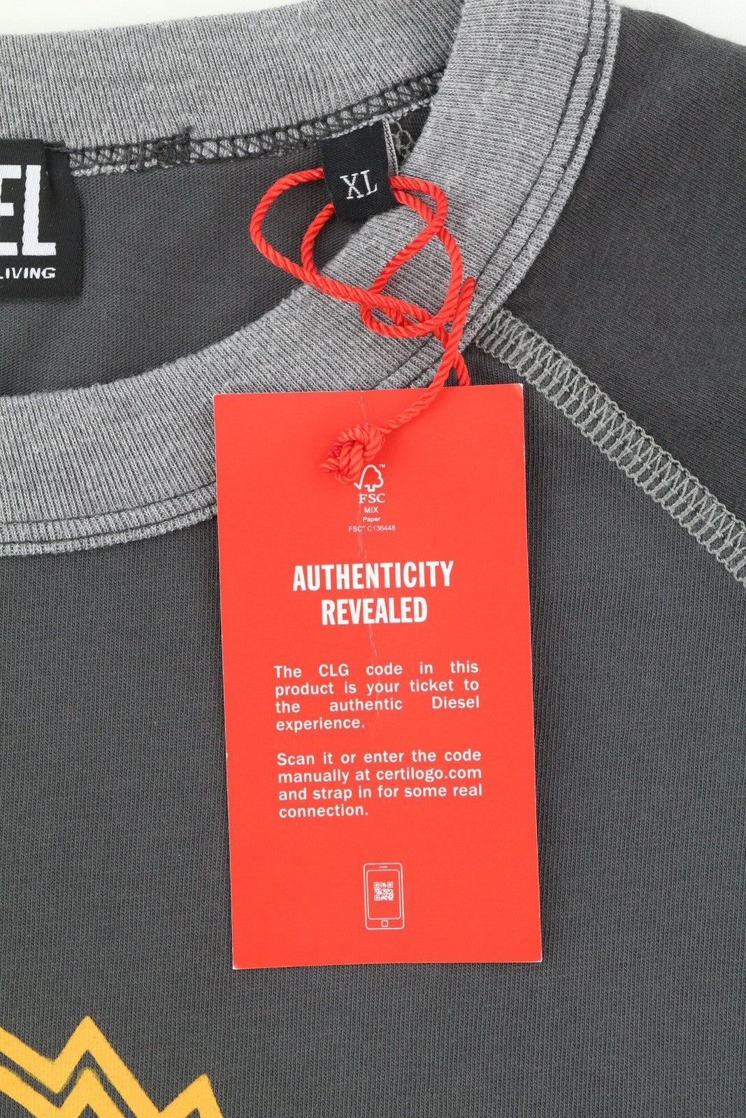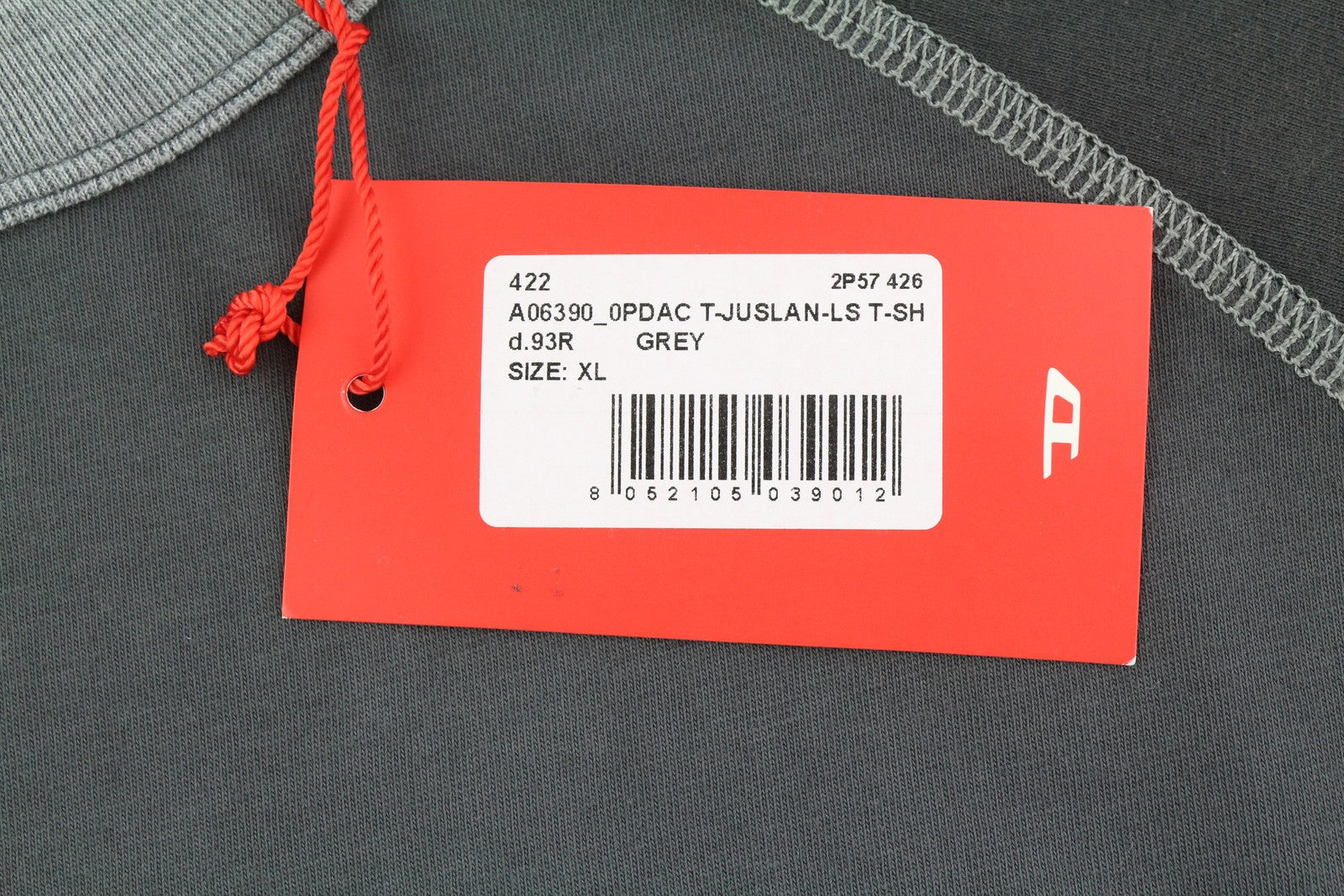 DIESEL T-Juslan-LS Men T-Shirt XL Grey Crew Neck Long Sleeve Stretch