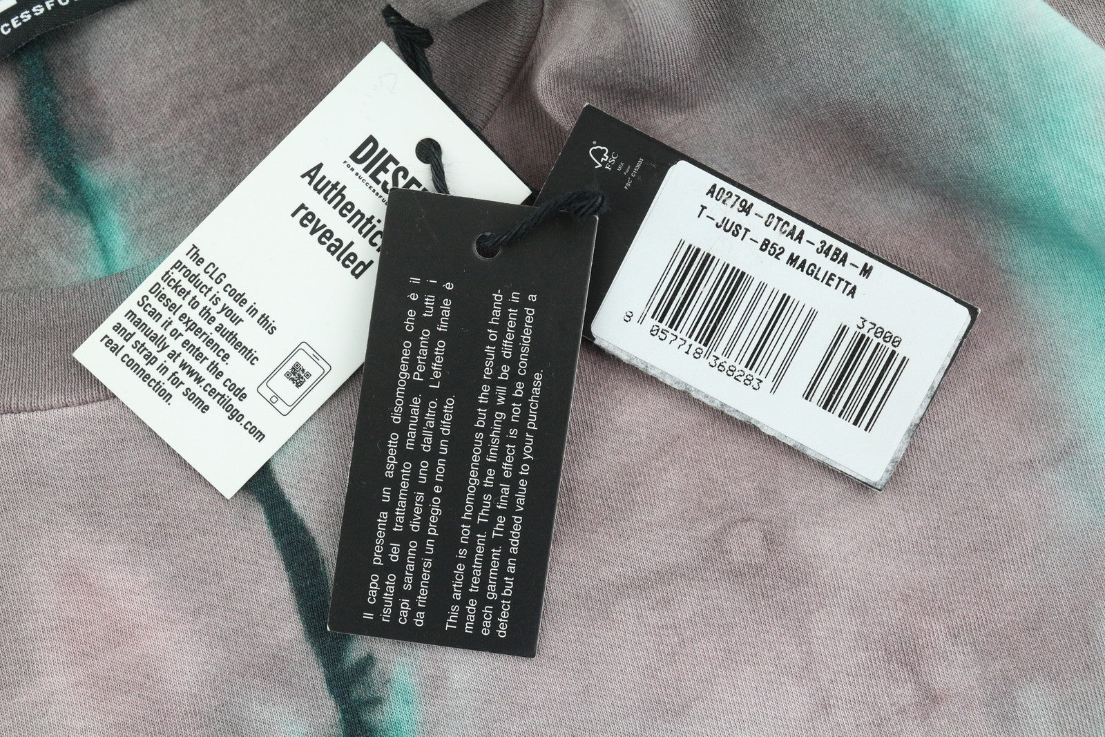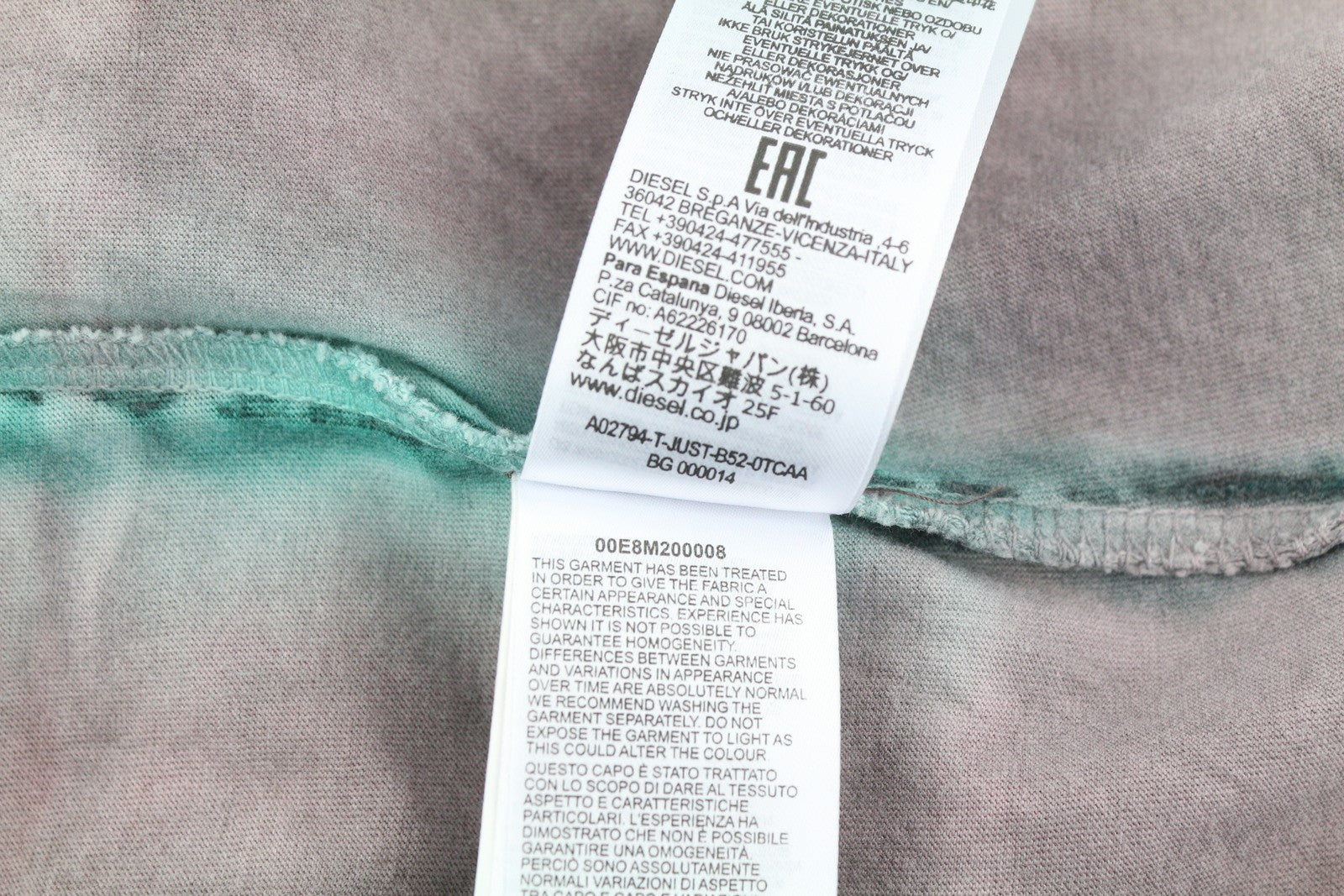 DIESEL T-Just-B52 Men T-Shirt M Short Sleeved Acid Wash Effect Crew Neck RRP€125