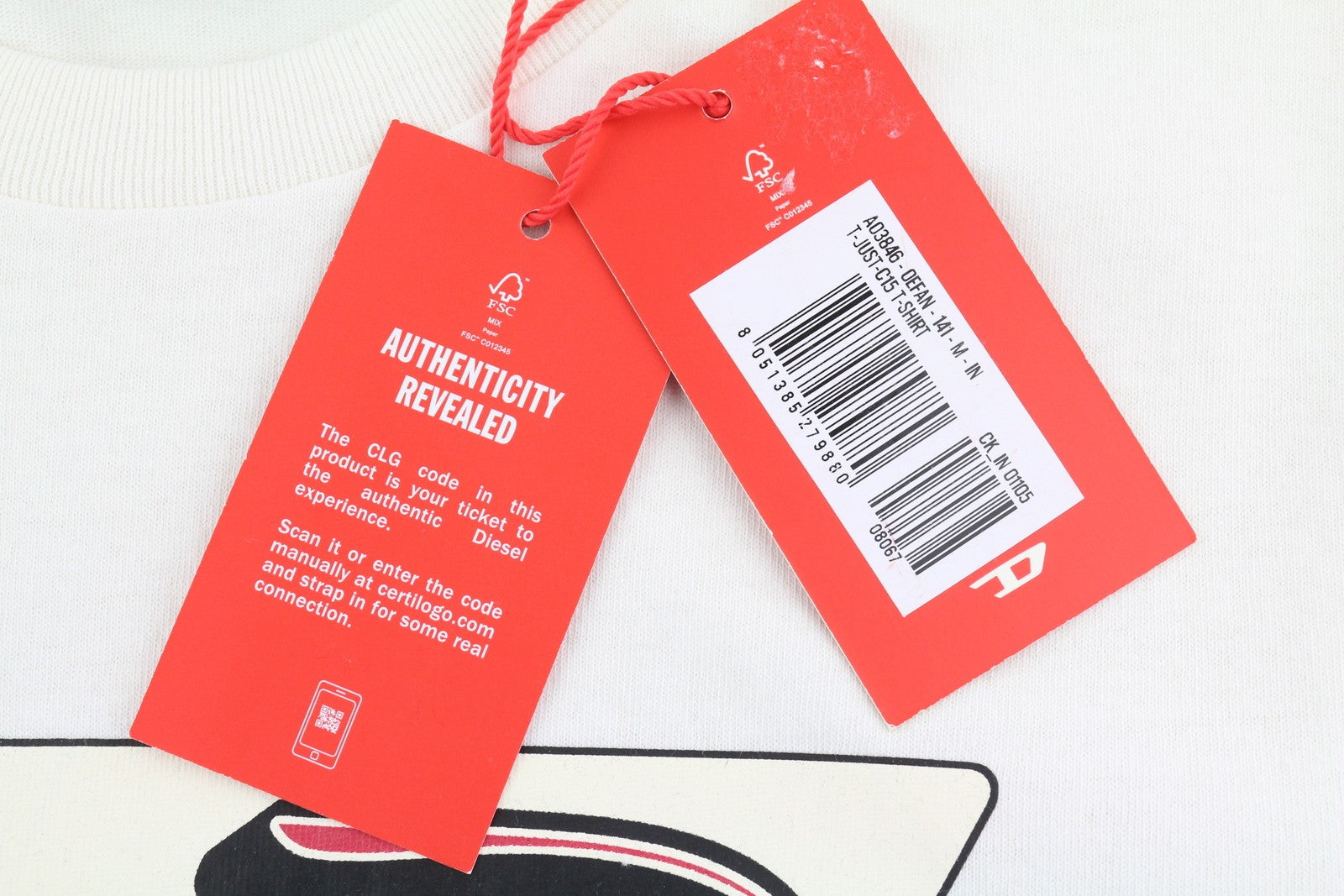 DIESEL T-Just-C15 Men's T-Shirt M White Stretch Tricot Crew Neck
