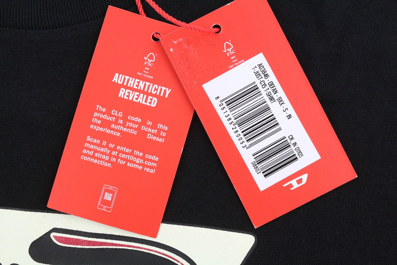 DIESEL T-Just-C15 S Men T-Shirt Black Tricot Stretchy Crew Neck Short Sleeved