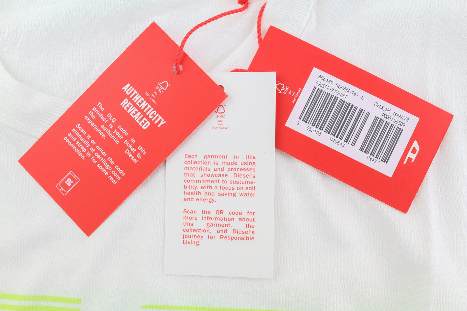 DIESEL T-Just-E19 Men T-Shirt L Short Sleeve Crew Neck Front Tricot White