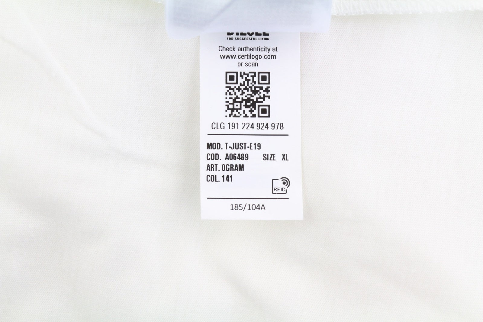 DIESEL T-Just-E19 Mens T-Shirt XL Short Sleeve Crew Collar Tricot Light