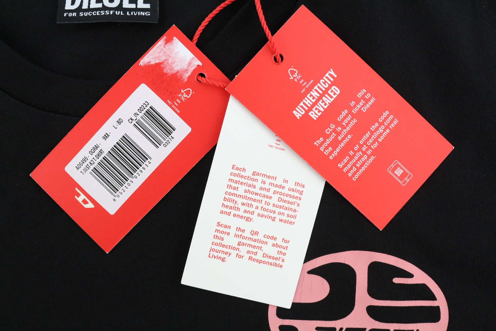 DIESEL T-Just-K2 Men T-Shirt L Short Sleeve Crew Neck Tricot Logo Black Casual