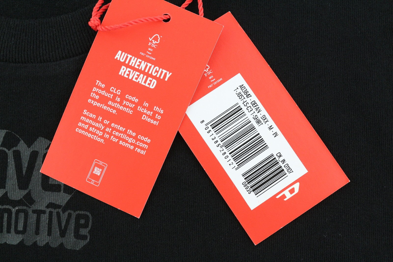 DIESEL T-Just-LS-C3 Men T-Shirt M Black Cotton Crew Neck Long Sleeved