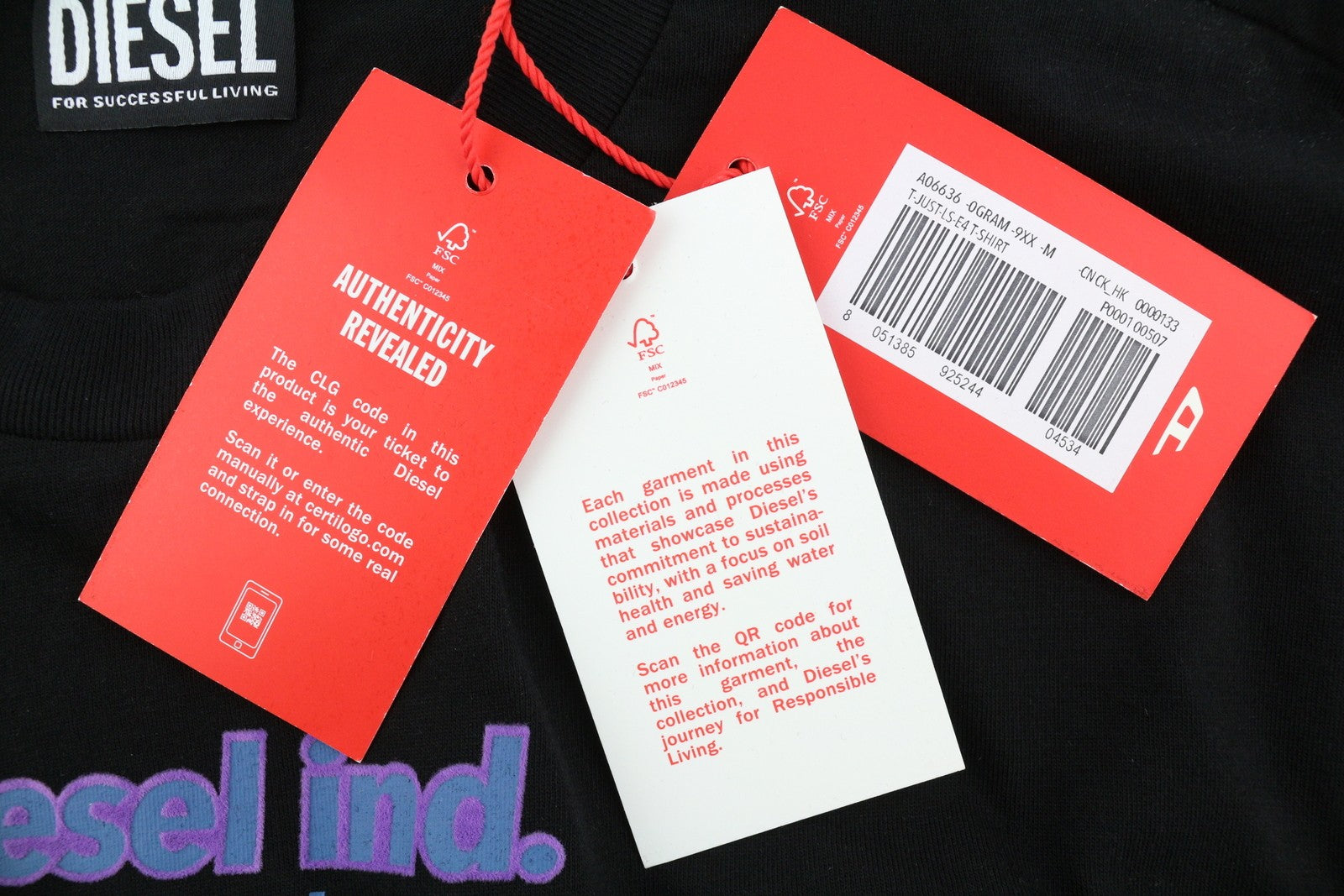 DIESEL T-Just-LS-E4 Men T-Shirt M Black Lon Sleeve Crew Neck Tricot