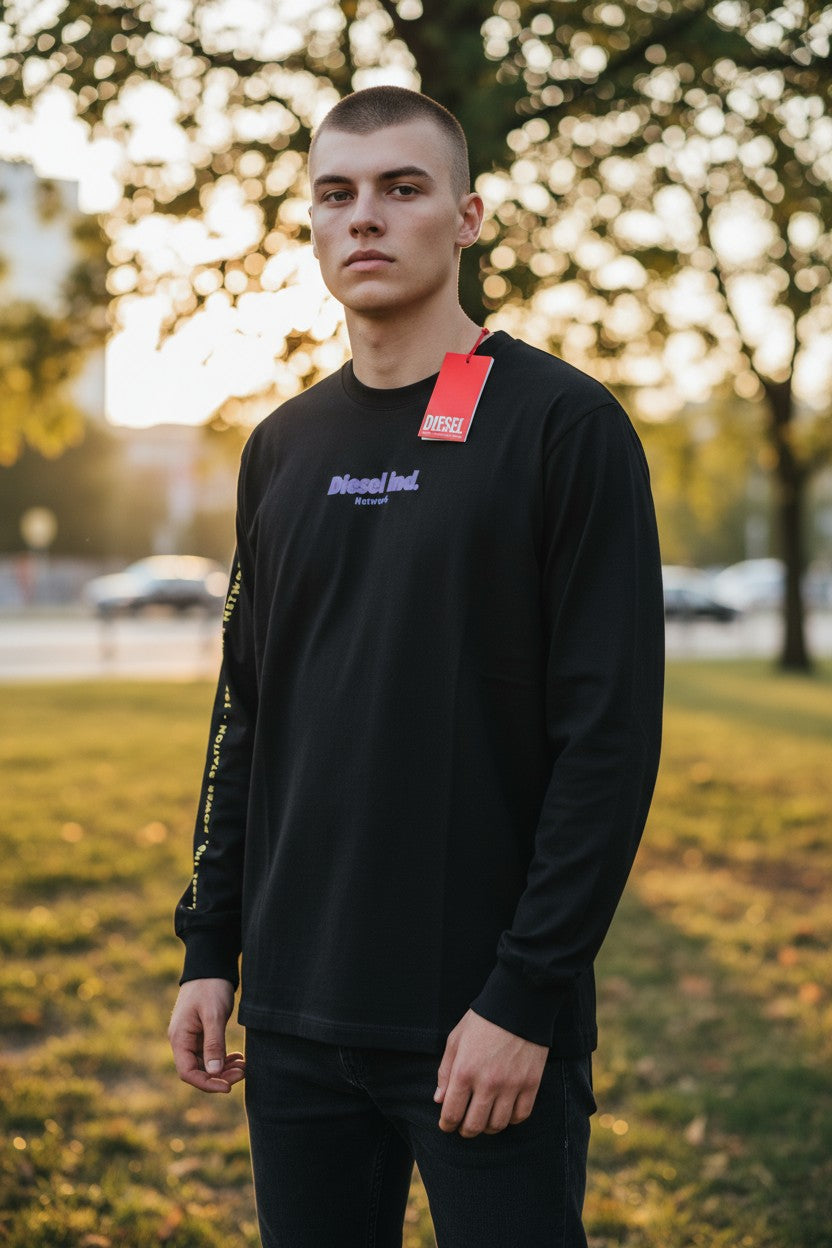 DIESEL T-Just-LS-E4 Men's T-Shirt L Black Lon Sleeve Crew Neck Tricot RRP€80