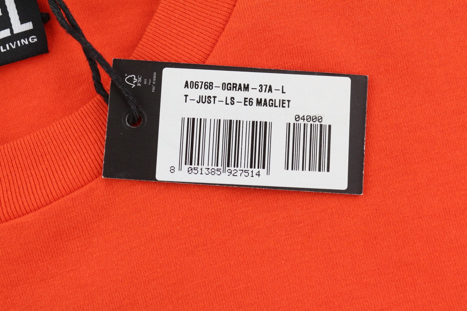 DIESEL T-Just-LS-E6 Men T-Shirt L Orange Pullover Long Sleeve Crew Collar Tricot
