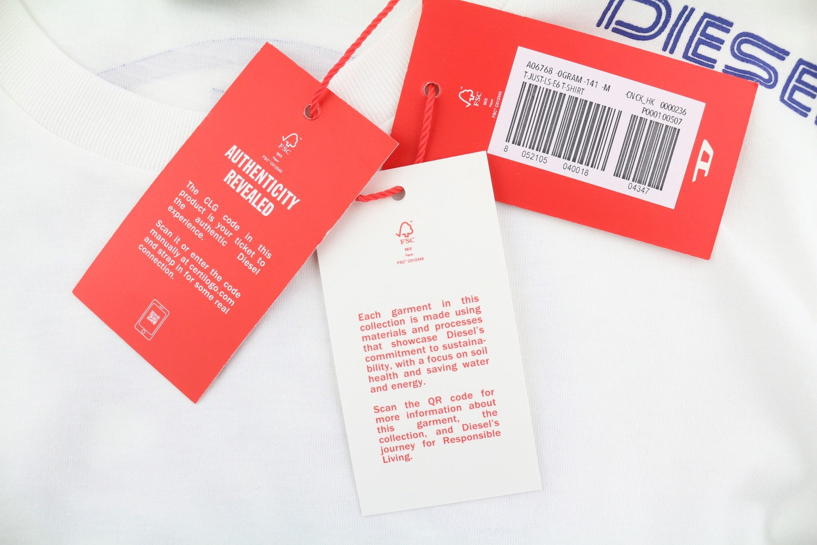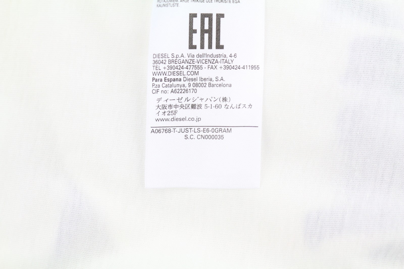 DIESEL T-Just-LS-E6 Mens T-Shirt M White Long Sleeve Crew Collar Tricot
