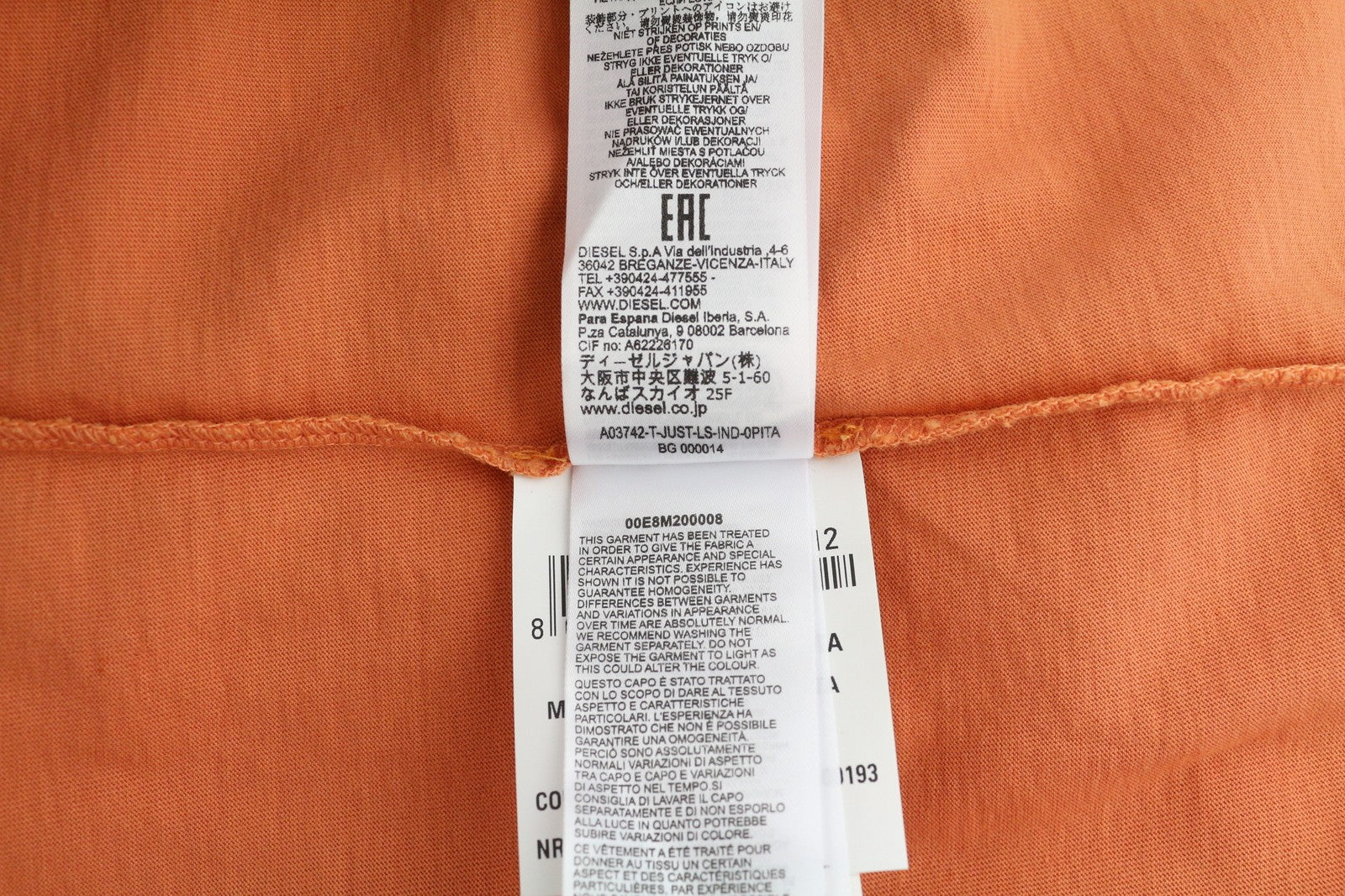DIESEL T-Just-LS-Ind Men T-Shirt L Orange Long Sleeve Crew Neck Tricot RRP€110