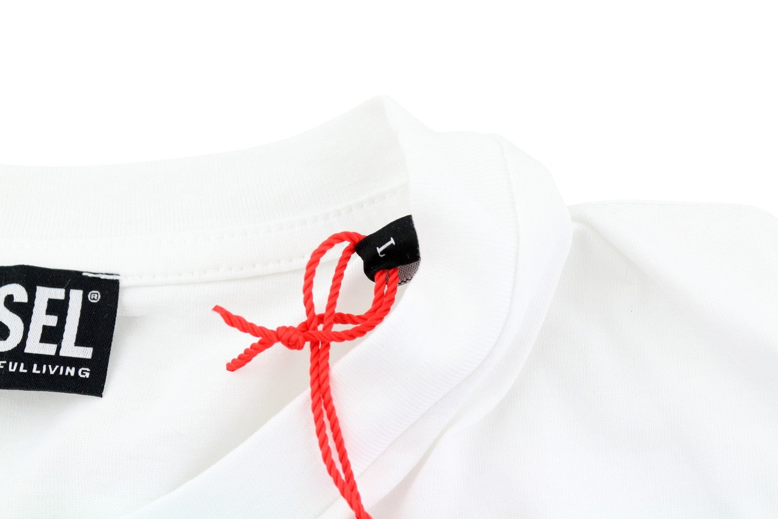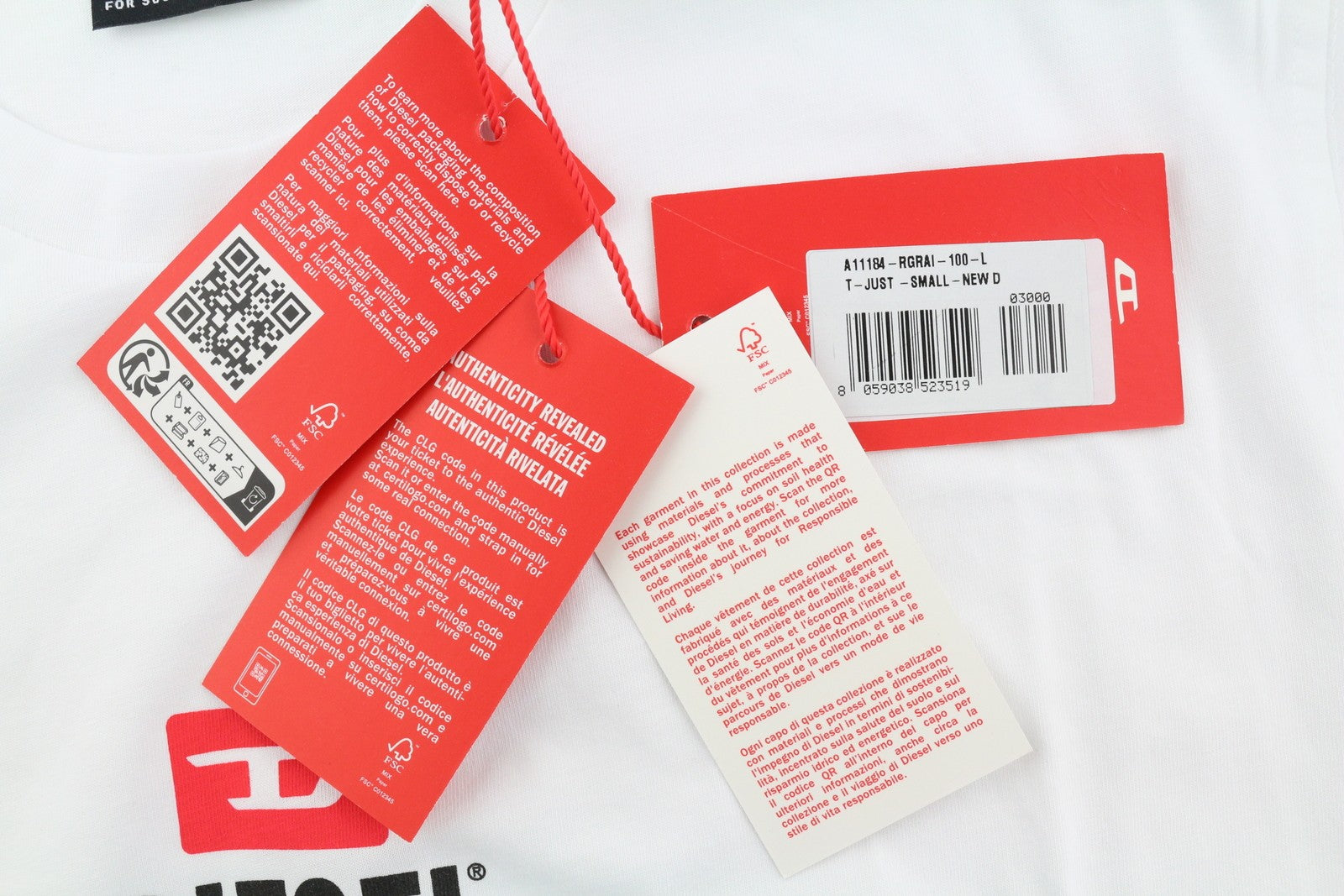 DIESEL T-Just-Small-New D Logo Men T-Shirt L White Short Sleeved Crew Cotton