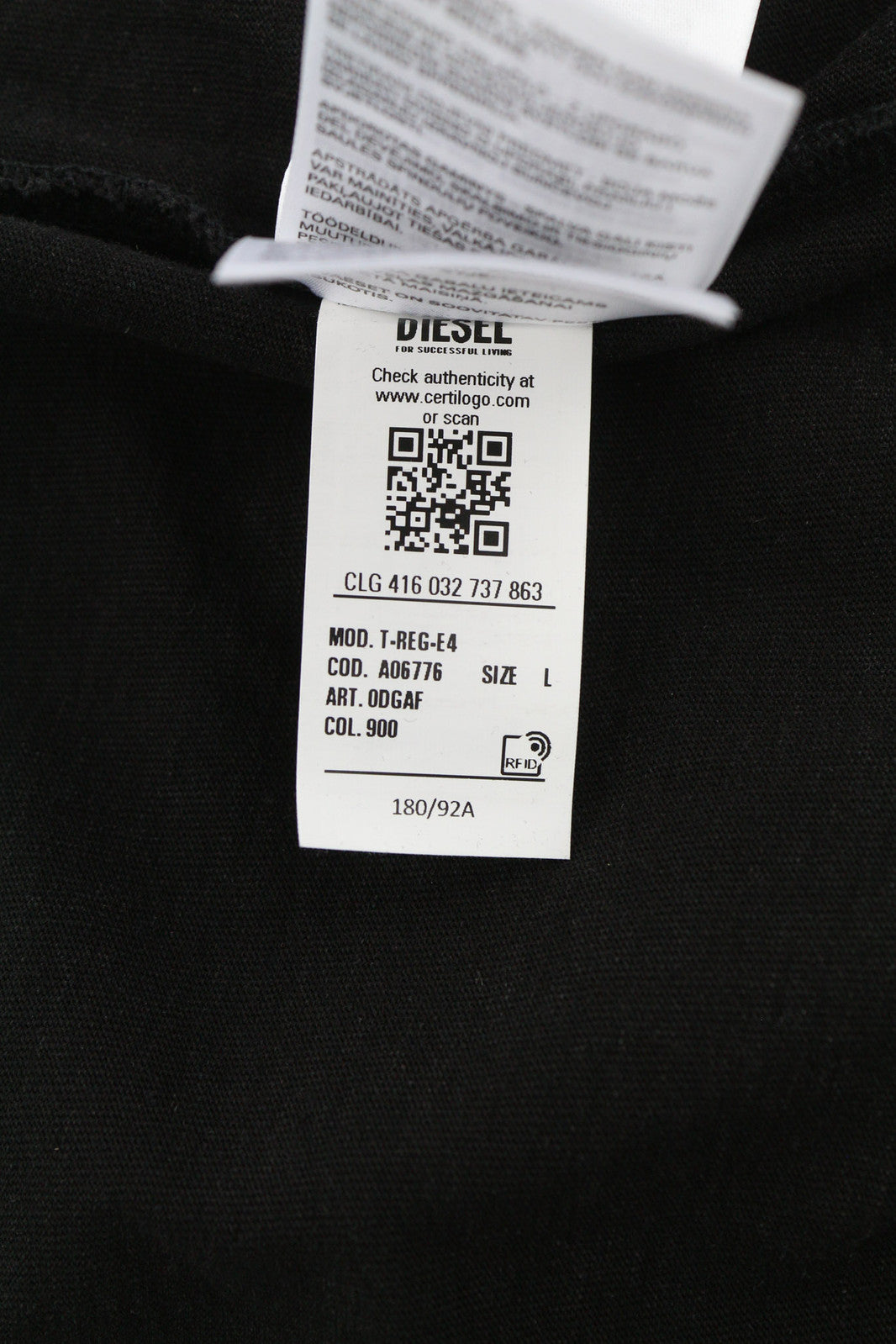 DIESEL T-Reg-E4 Women T-Shirt L Black Short Sleeve Crew Collar Washed RRP€125