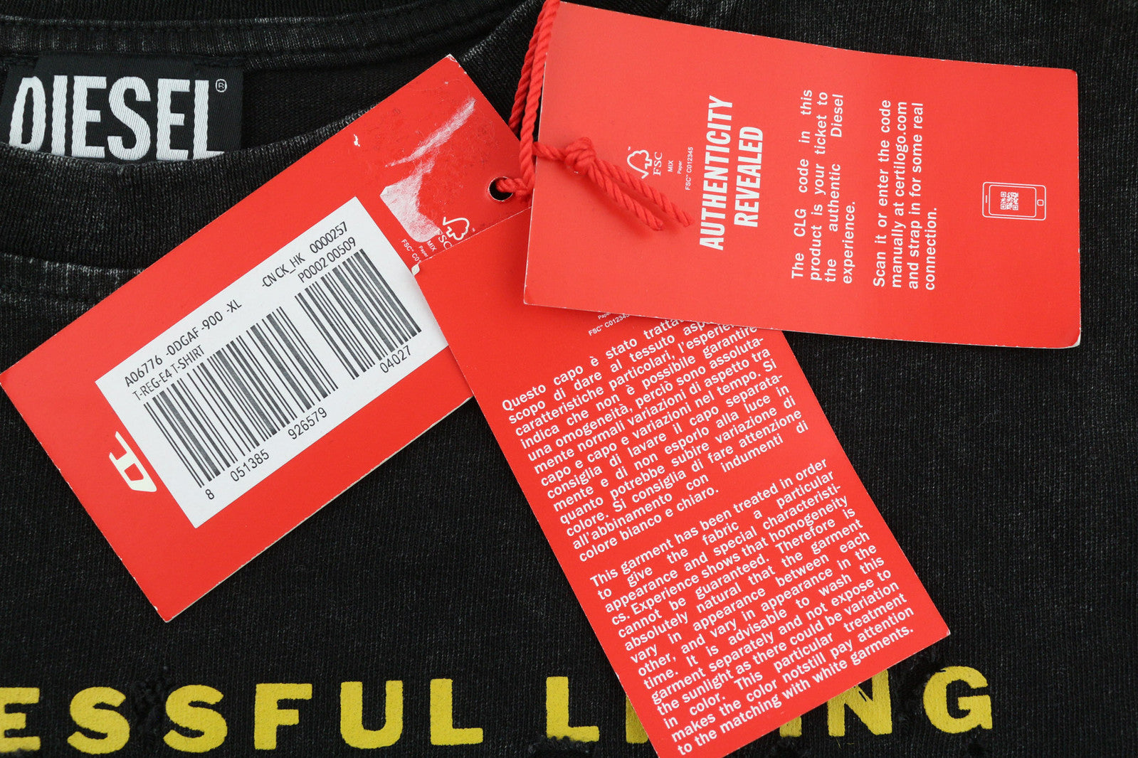 DIESEL T-Reg-E4 Women T-Shirt XL Black Short Sleeve Crew Collar Washed RRP€125