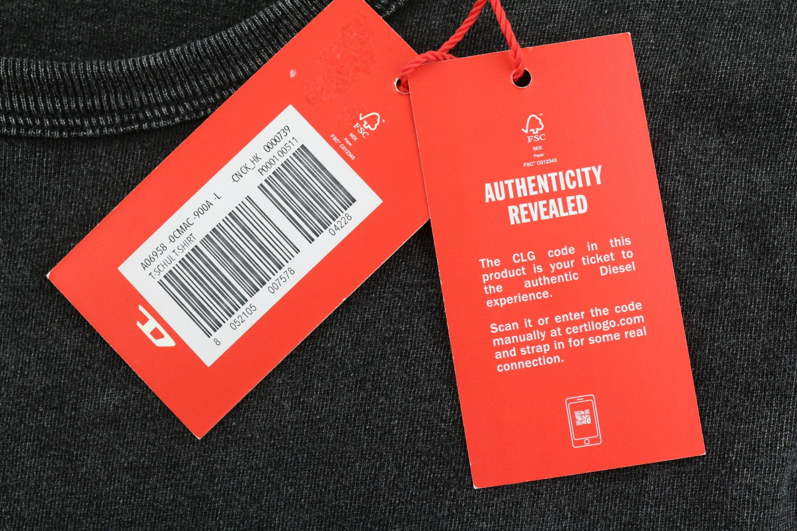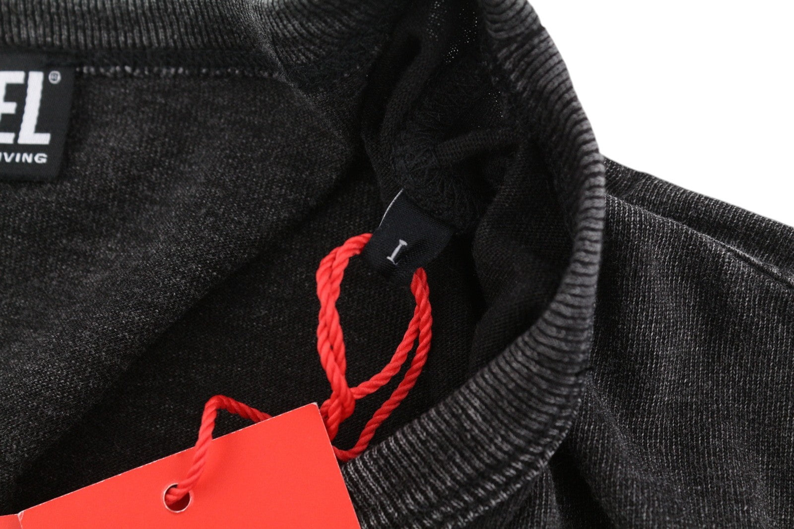 DIESEL T-Schul Mens T-Shirt L Black Washed Effect Crew Tricot Long Sleeve