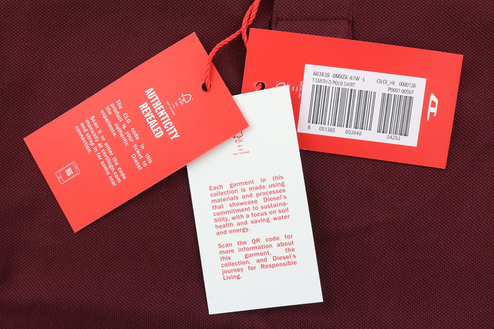 DIESEL T-Smith-D Mens T-Shirt L Short Sleeve Polo Neck Cotton Burgundy