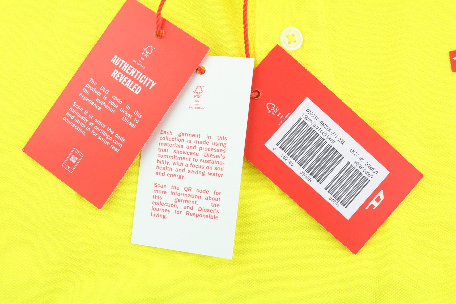 DIESEL T-Smith-Div Mens T-Shirt 2XL Short Sleeve Polo Neck Cotton Yellow