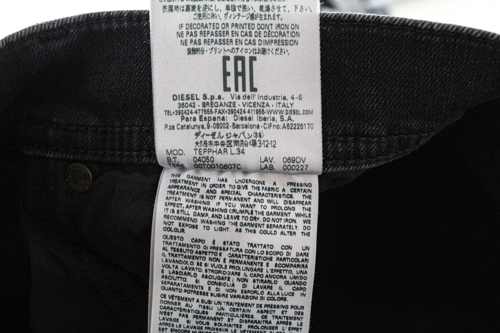 DIESEL Tepphar 069DV Men's Jeans W28/L34 Black Slim Carrot Washed Stretch Denim