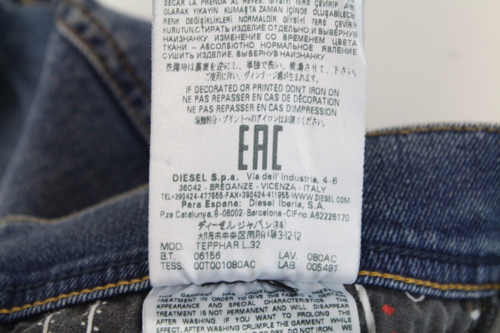 DIESEL Tepphar 080AC Mens Jeans W27/L32 Slim Carrot Blue Cotton Stretchy Ripped