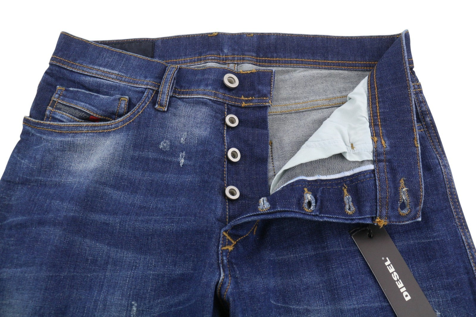 DIESEL Tepphar 084TX Men Jeans W28/L32 Blue Whiskers Faded Distress Skinny Fit