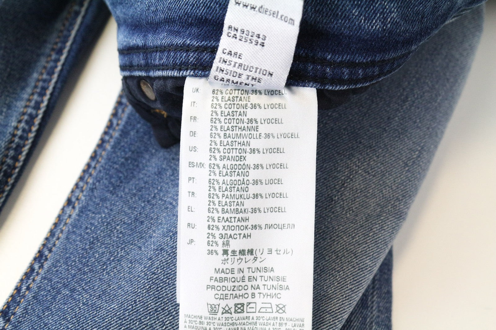 CONDITION: New with defects. Leftover glue residue, sticky fabric on the front and back of the right calf area. THIS IS A RARE SALES SAMPLE. Inside labels may differ. Some Diesel sizes can differ. Please, carefully check the given measurements, especially the waist.