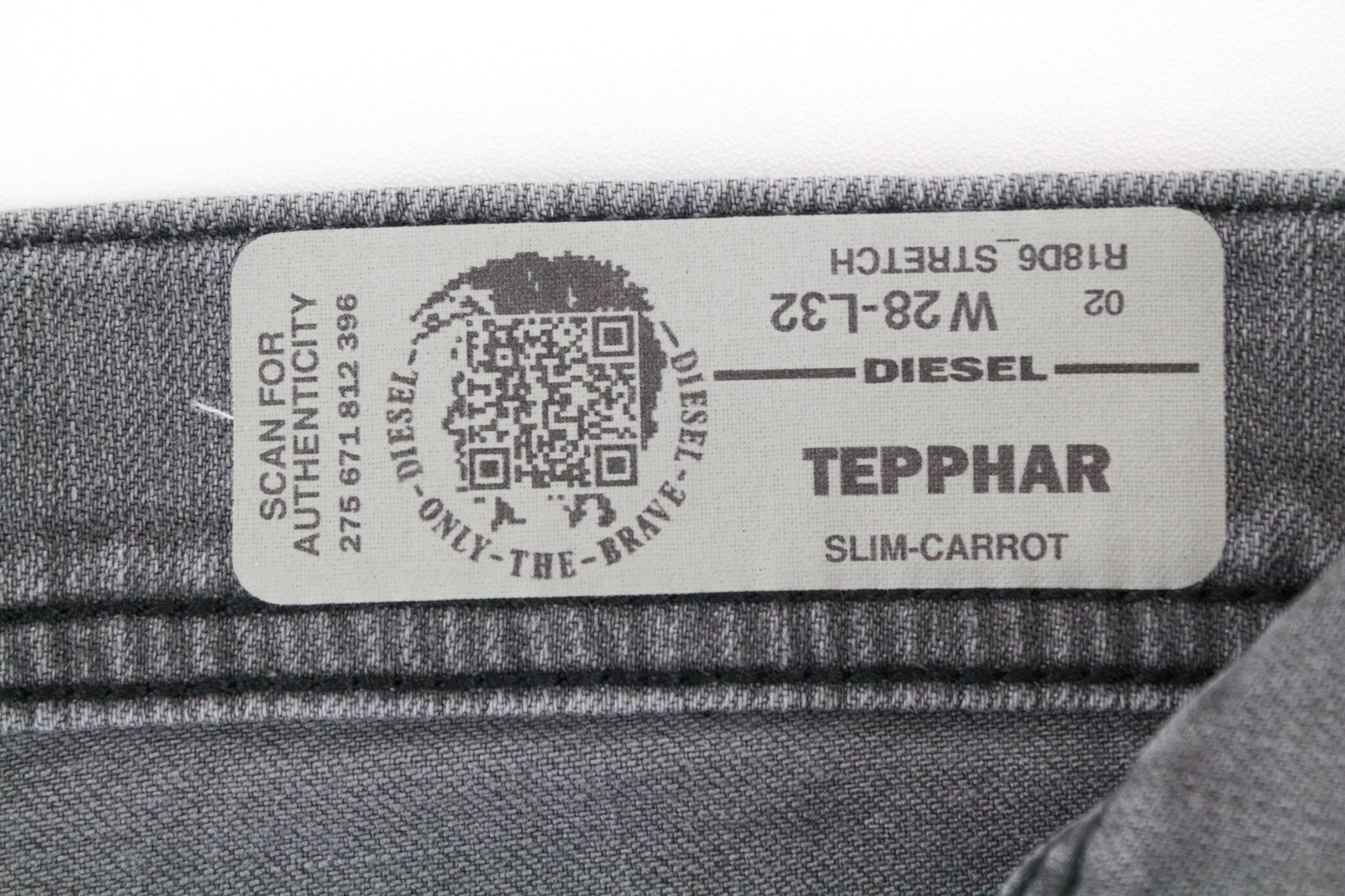 DIESEL Tepphar R18D6 W28/L32 Men's Slim Carrot Cotton Stretch Jeans Grey