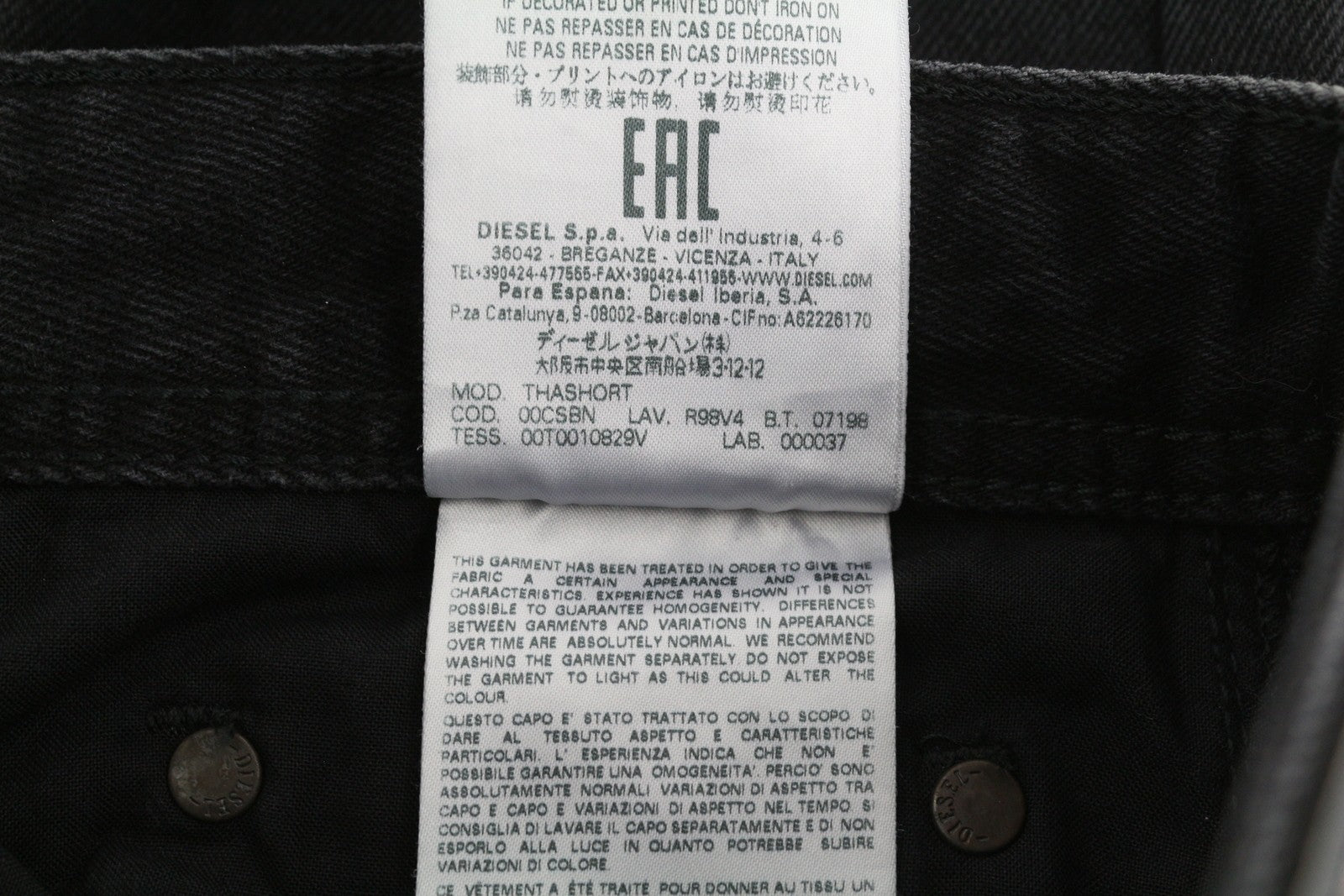 DIESEL Thashort R98V4 Men Shorts W28 Denim Black Zip Fly Pockets Logo Casual