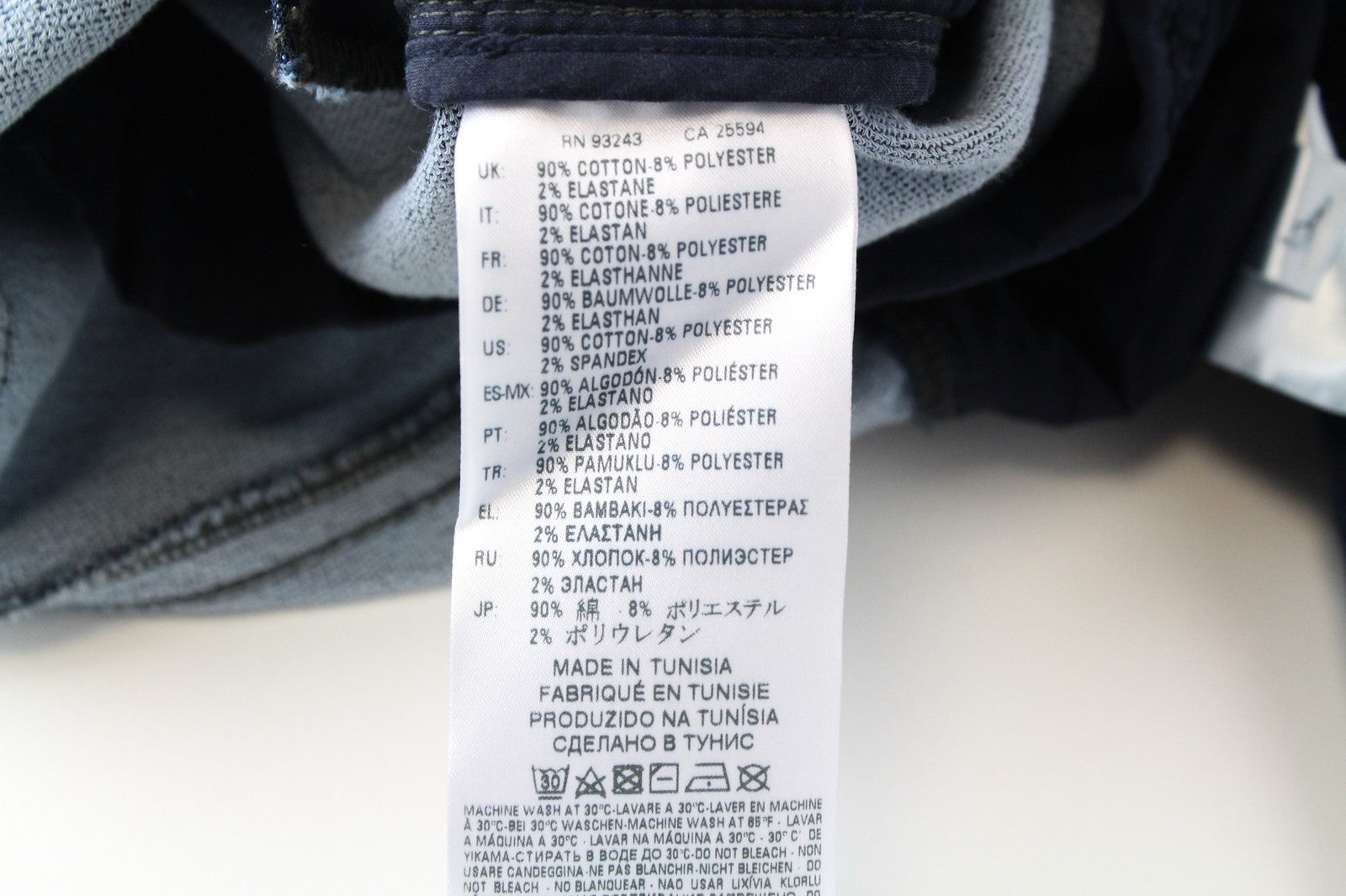 Material : 90% Cotton, 8% Polyester, 2% Elastane