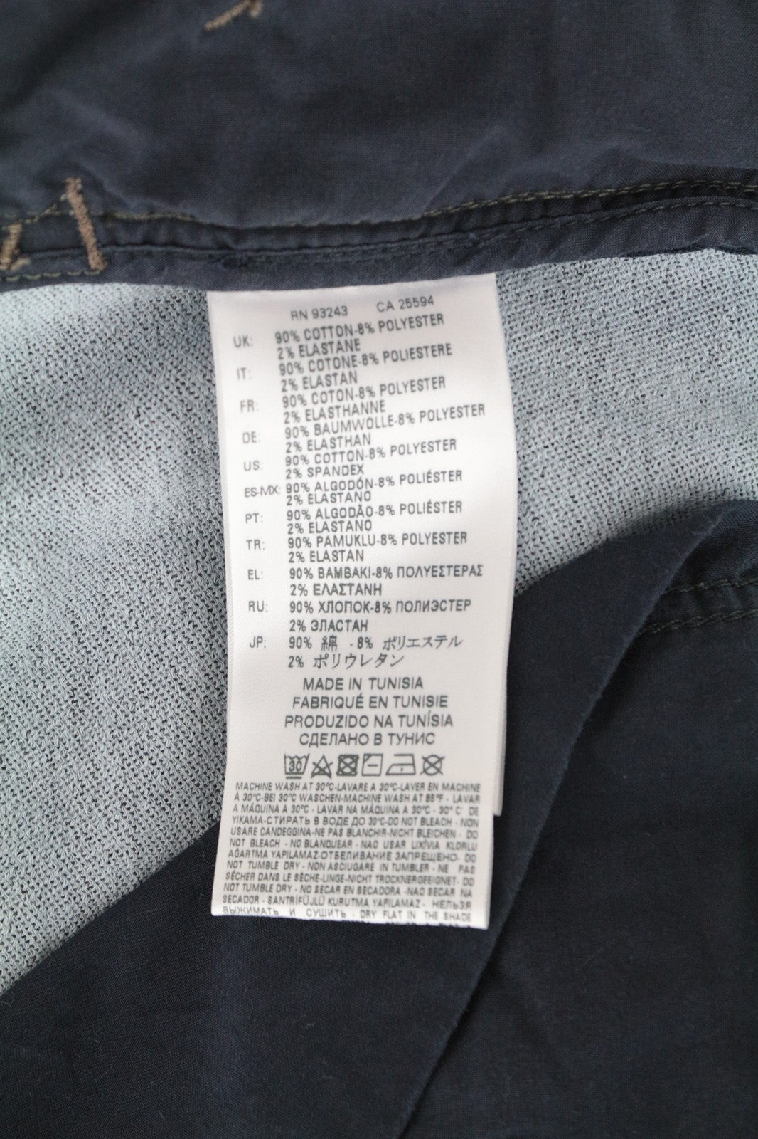 Material : 90% Cotton, 8% Polyester, 2% Elastane