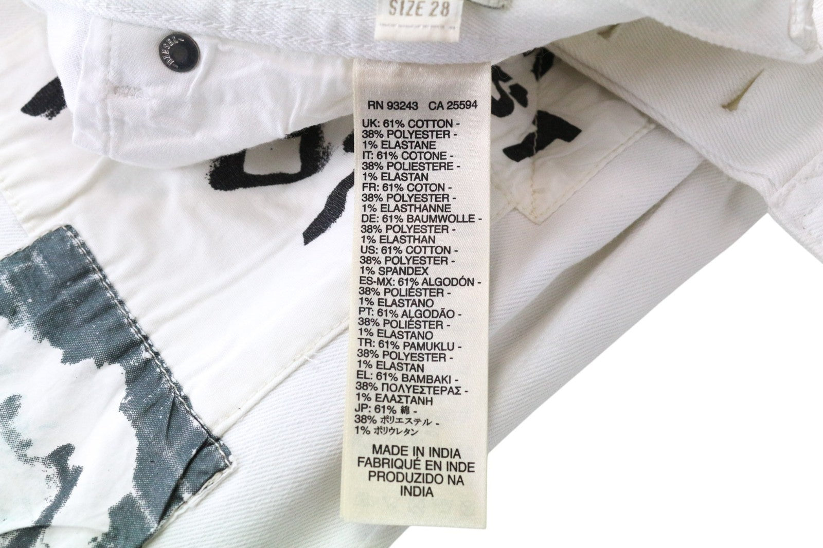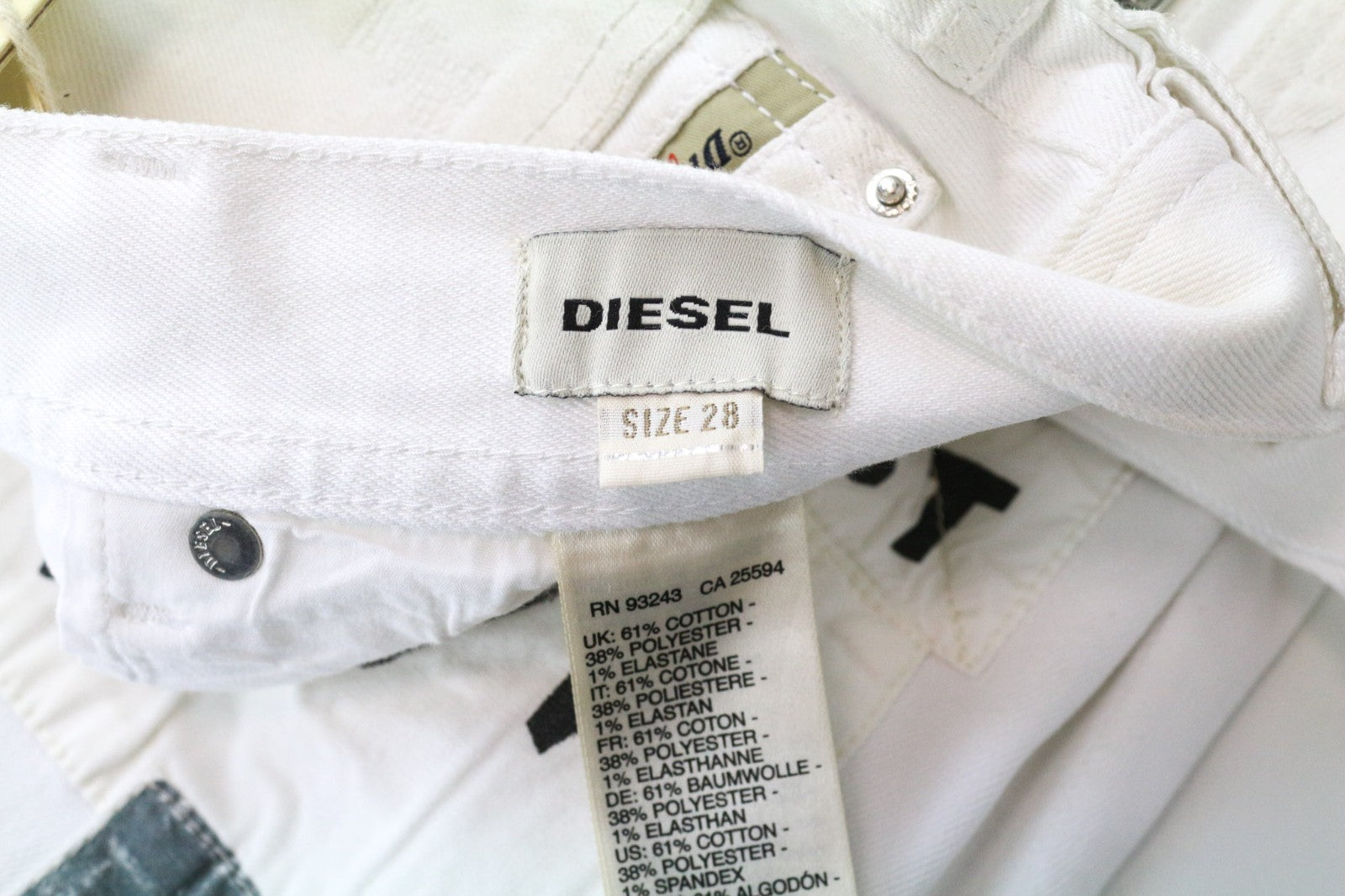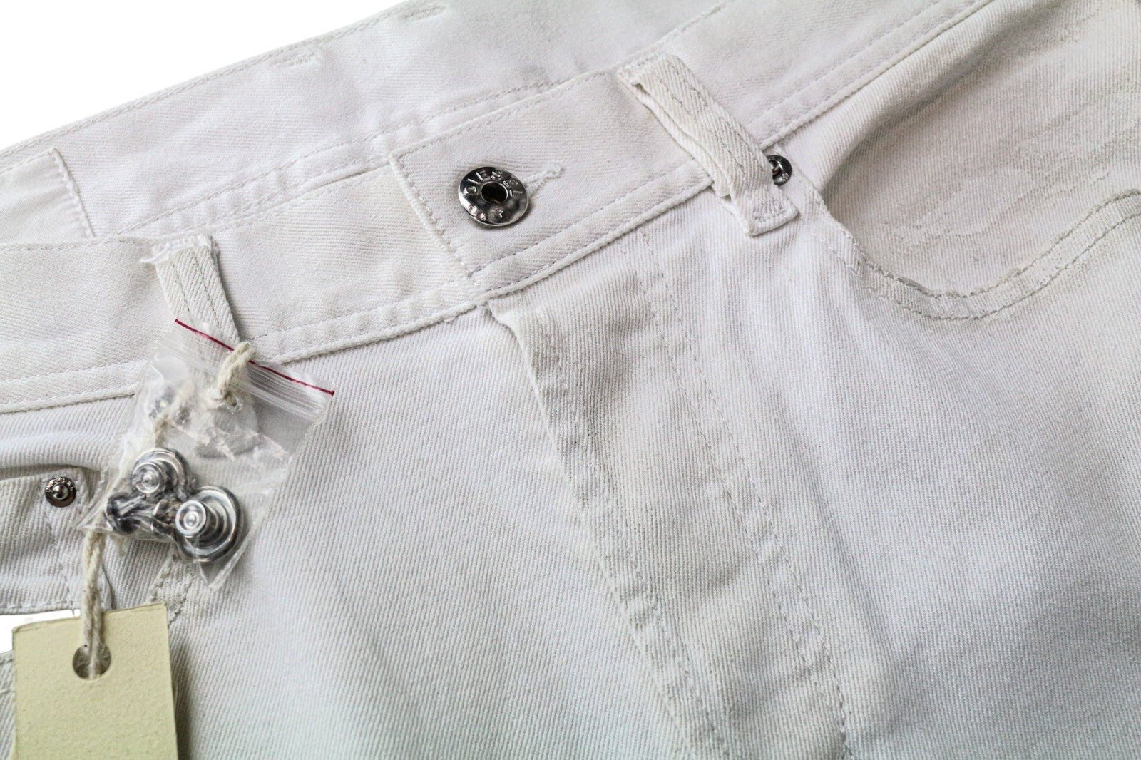 DIESEL Theppar Men's Jeans W28 White Cotton Stretch Patched Stained Design