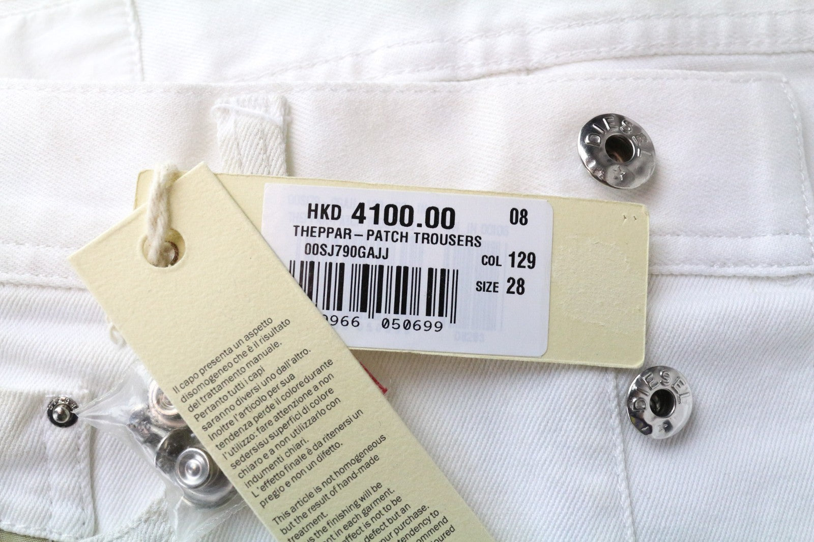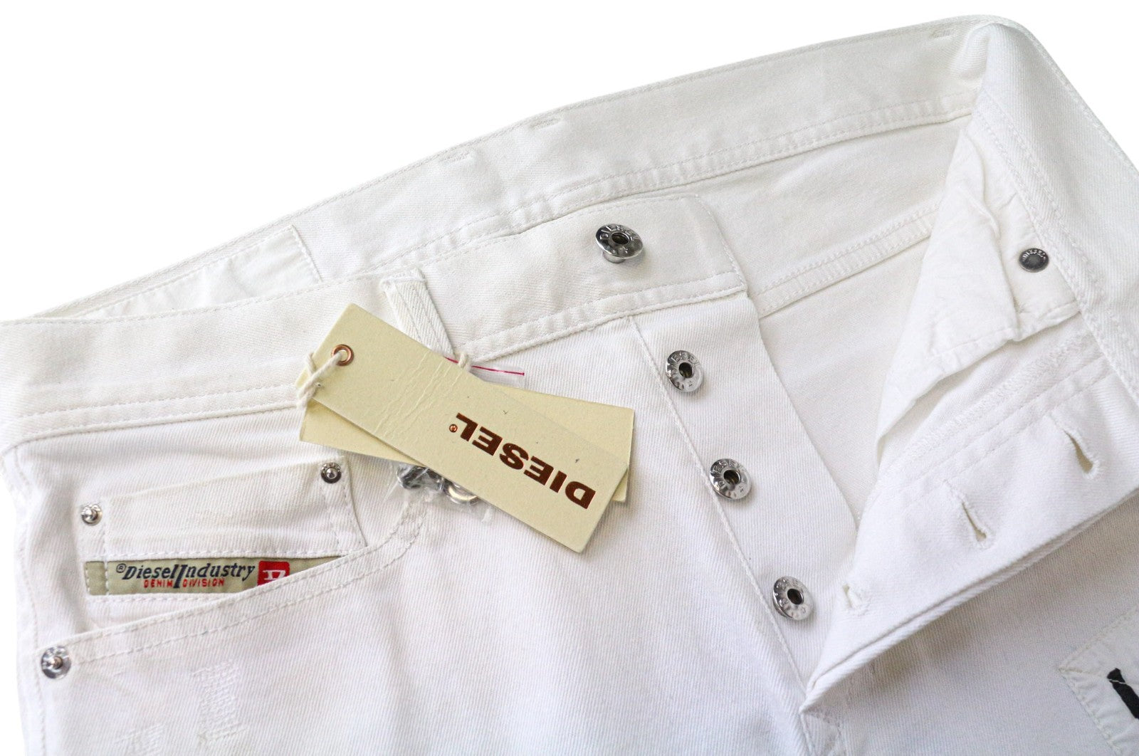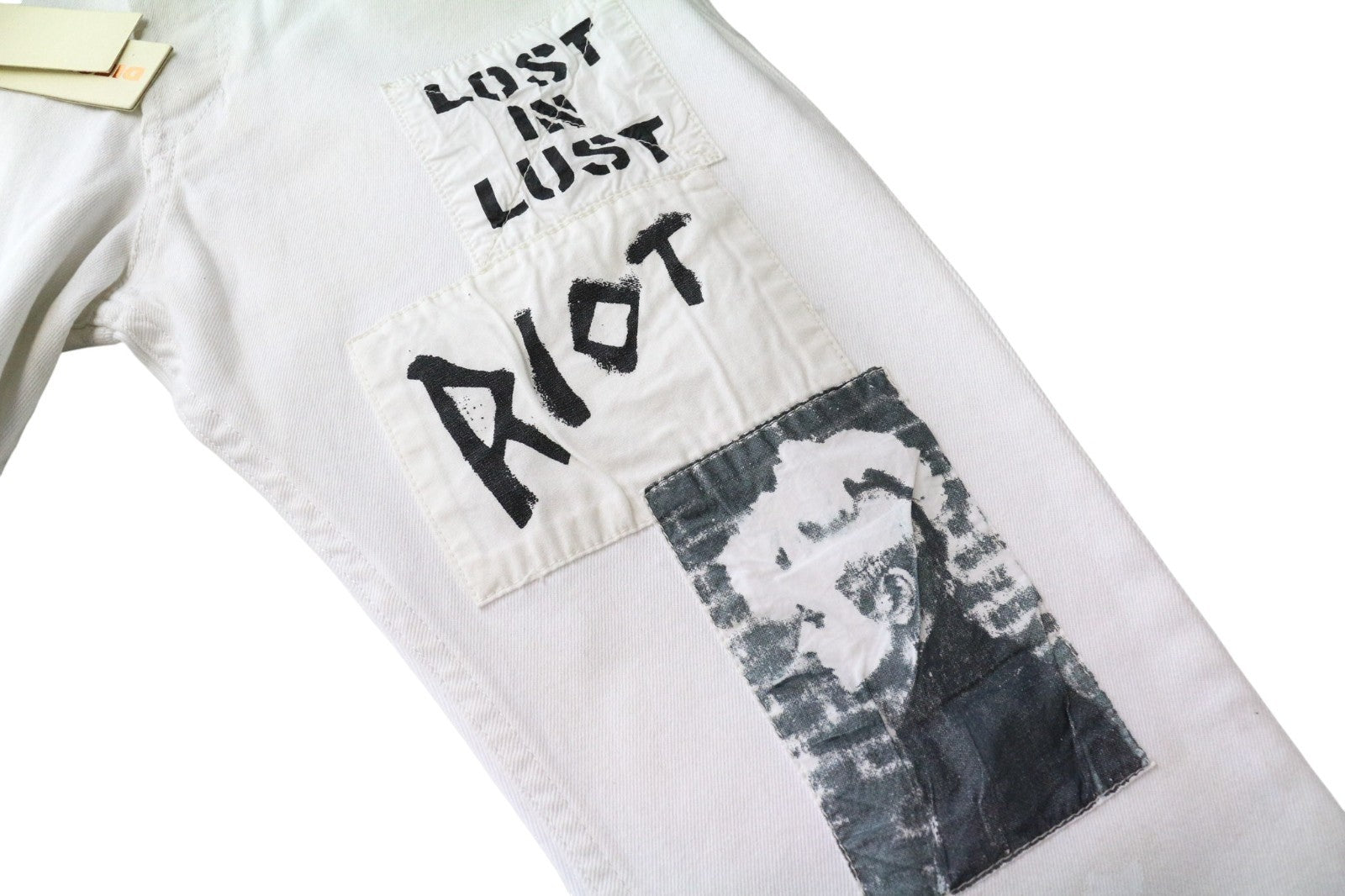 DIESEL Theppar Men's Jeans W28 White Cotton Stretch Patched Stained Design