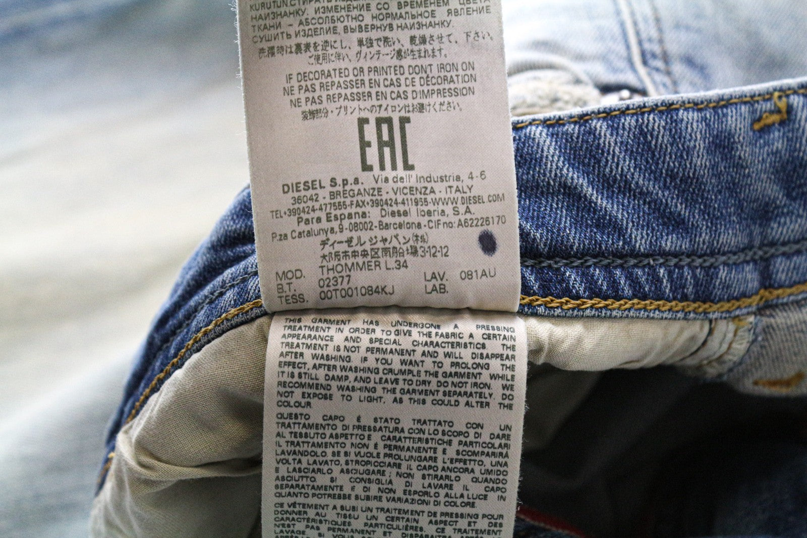 DIESEL Thommer 081AU Men's Jeans W34/L34 Slim Skinny Blue Cotton Stretch Wash