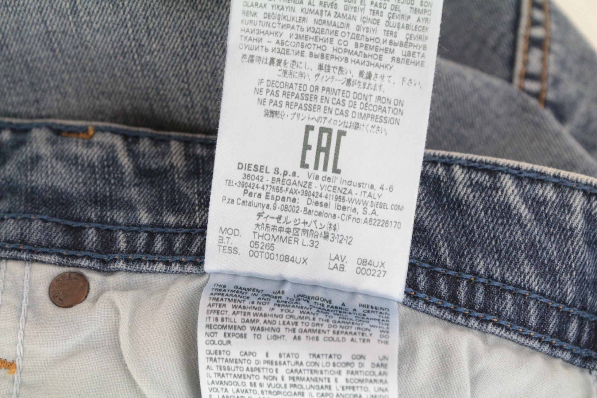 DIESEL Thommer 084UX Men Jeans W29/L33 Blue Stone Wash Slim Skinny Stain Zip Fly
