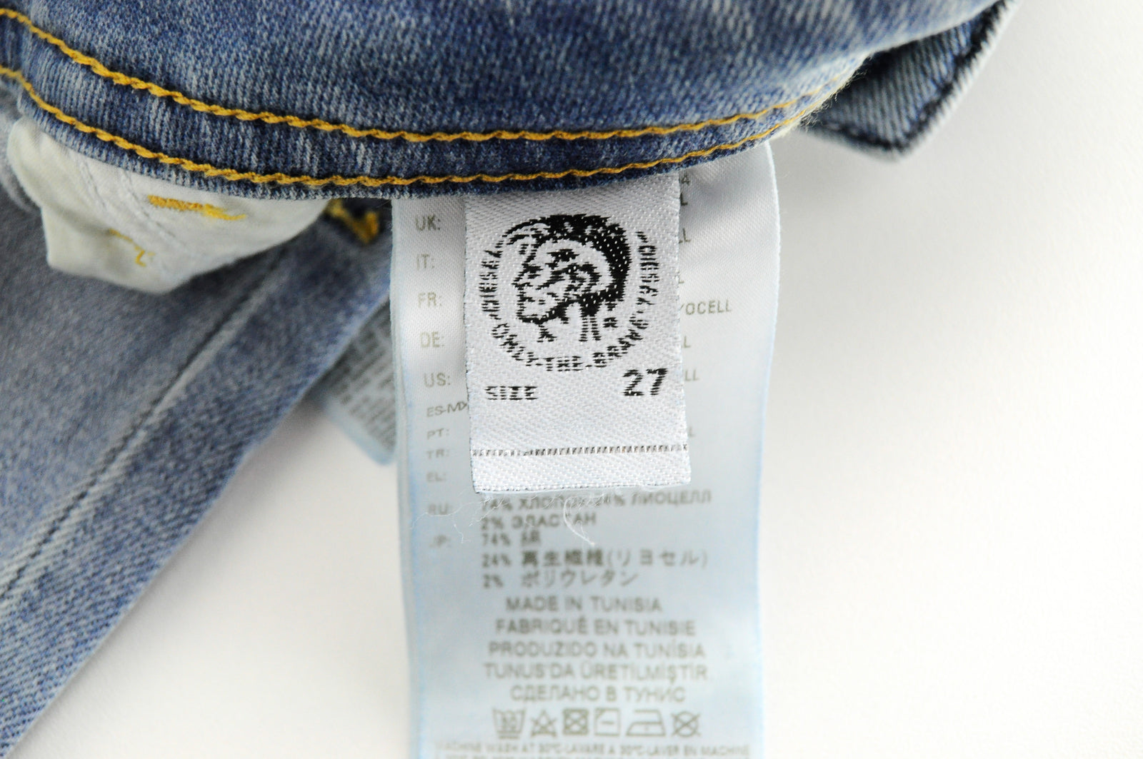 DIESEL Thommer 087AX Men's Blue Jeans W27/L32 Ripped Washed Slim Skinny Fit