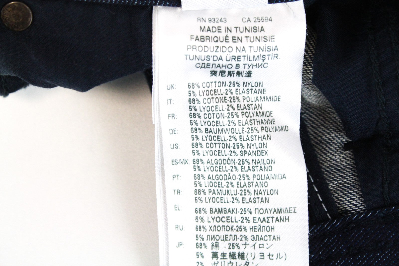 Material : 68%Cotton,25%Nylon,5%Lyocell,2%Elastane
