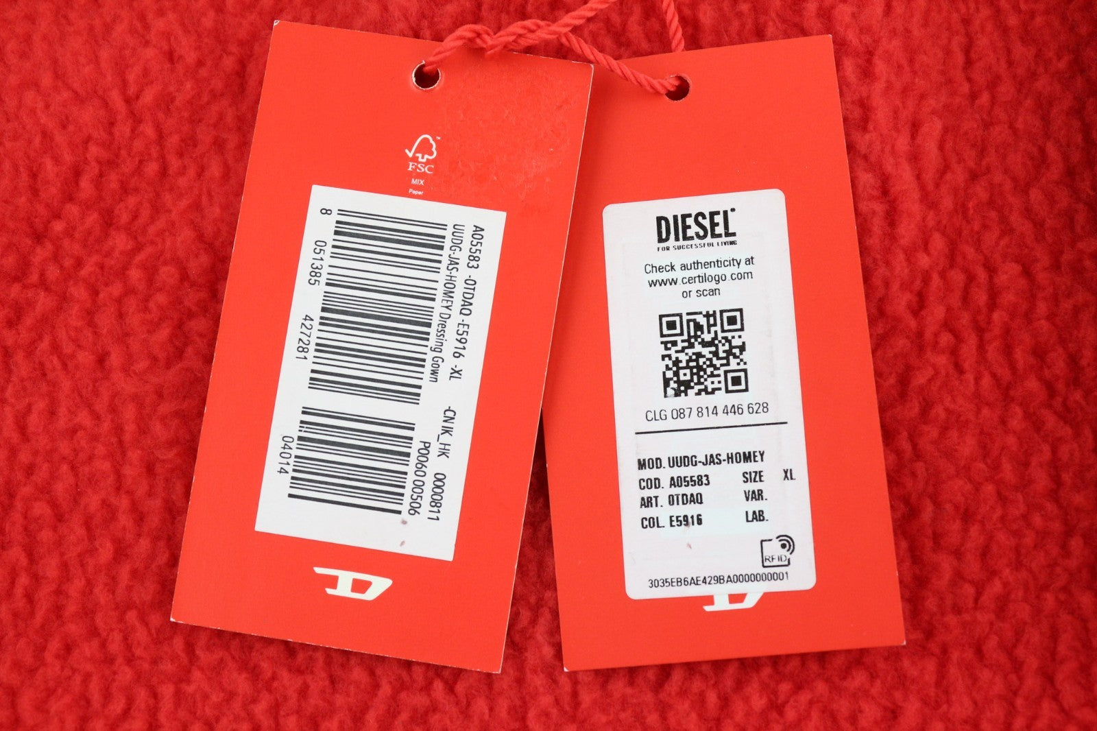 DIESEL Uudg-Jas-Homey Women Robe XL Fleece Hooded Unisex Belted with Pockets