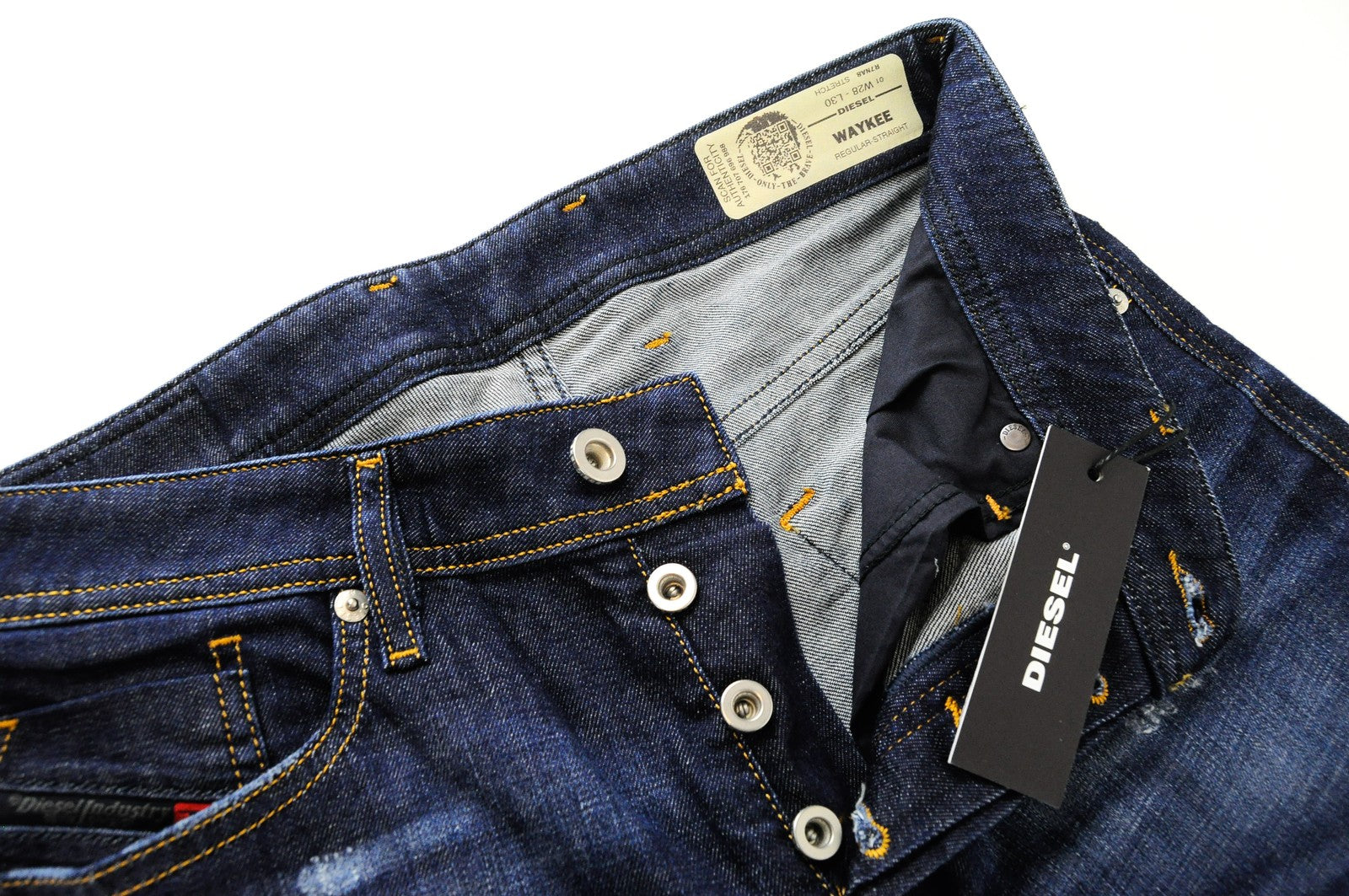 DIESEL Waykee R7NA8 Men Jeans W28/L30 Washed Dark Blue Cotton Straight Leg