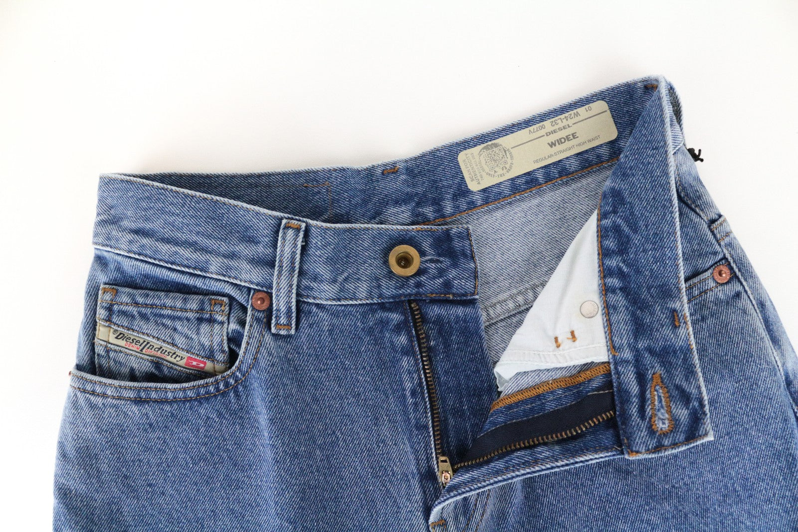 DIESEL Widee 0077V Women's Jeans W24/L32 Straight Fit Washed Cotton Blue Girls