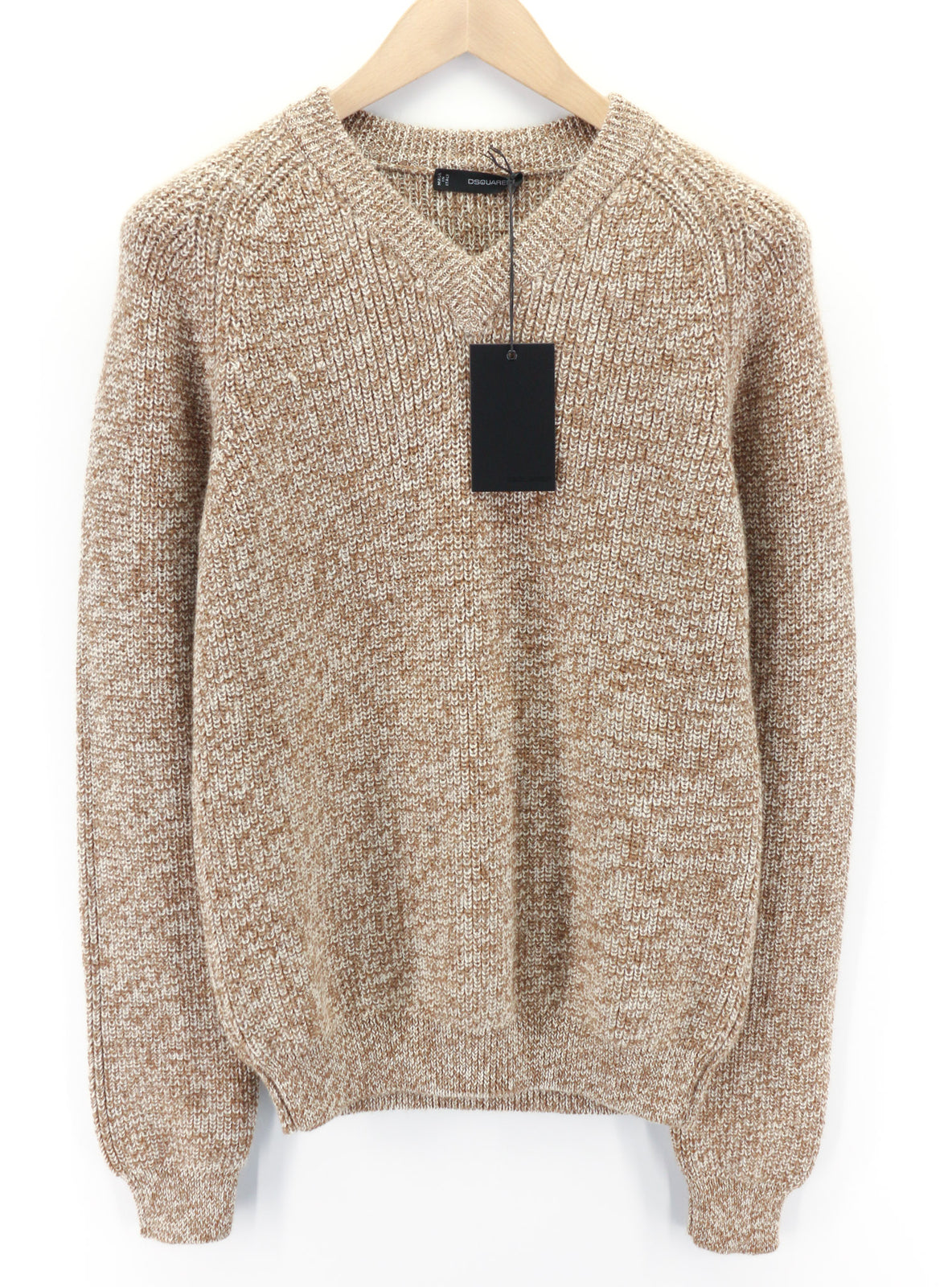 DSQUARED2 Women Jumper ~S Brown Pure Wool Knitted Long Sleeved Pullover V-Neck