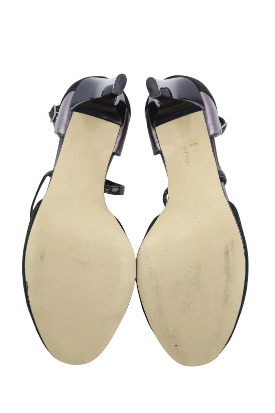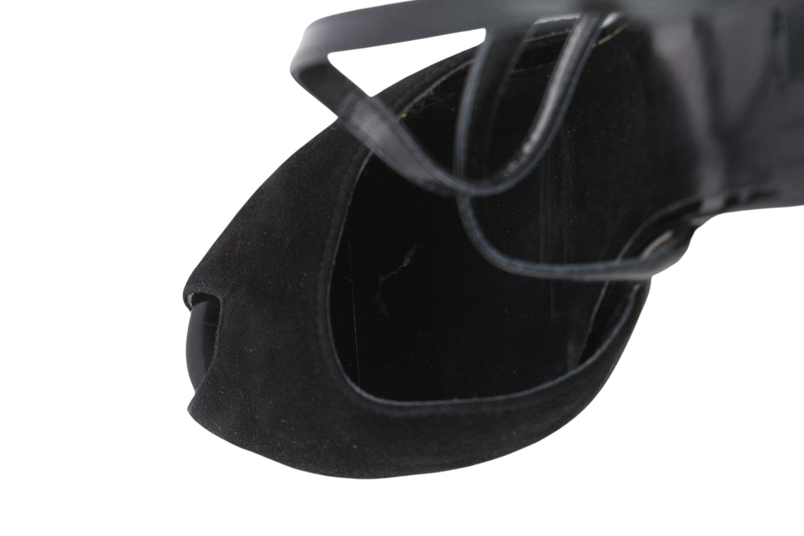 ELENA MIRO Women Heels EU40 Black Suede Leather Open Toe Strappy Shiny Heeled