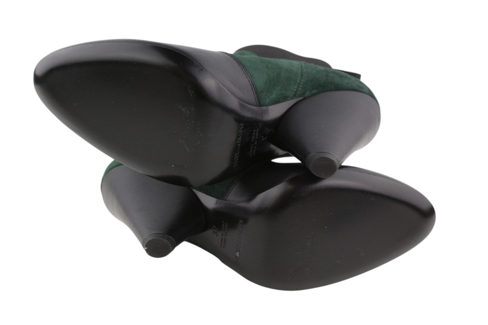 EMPORIO ARMANI Women Boots EU37 Black Suede Leather Almond Toe Mid Top Cowboy