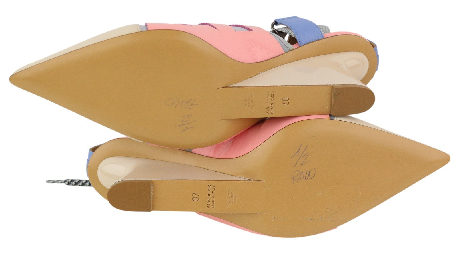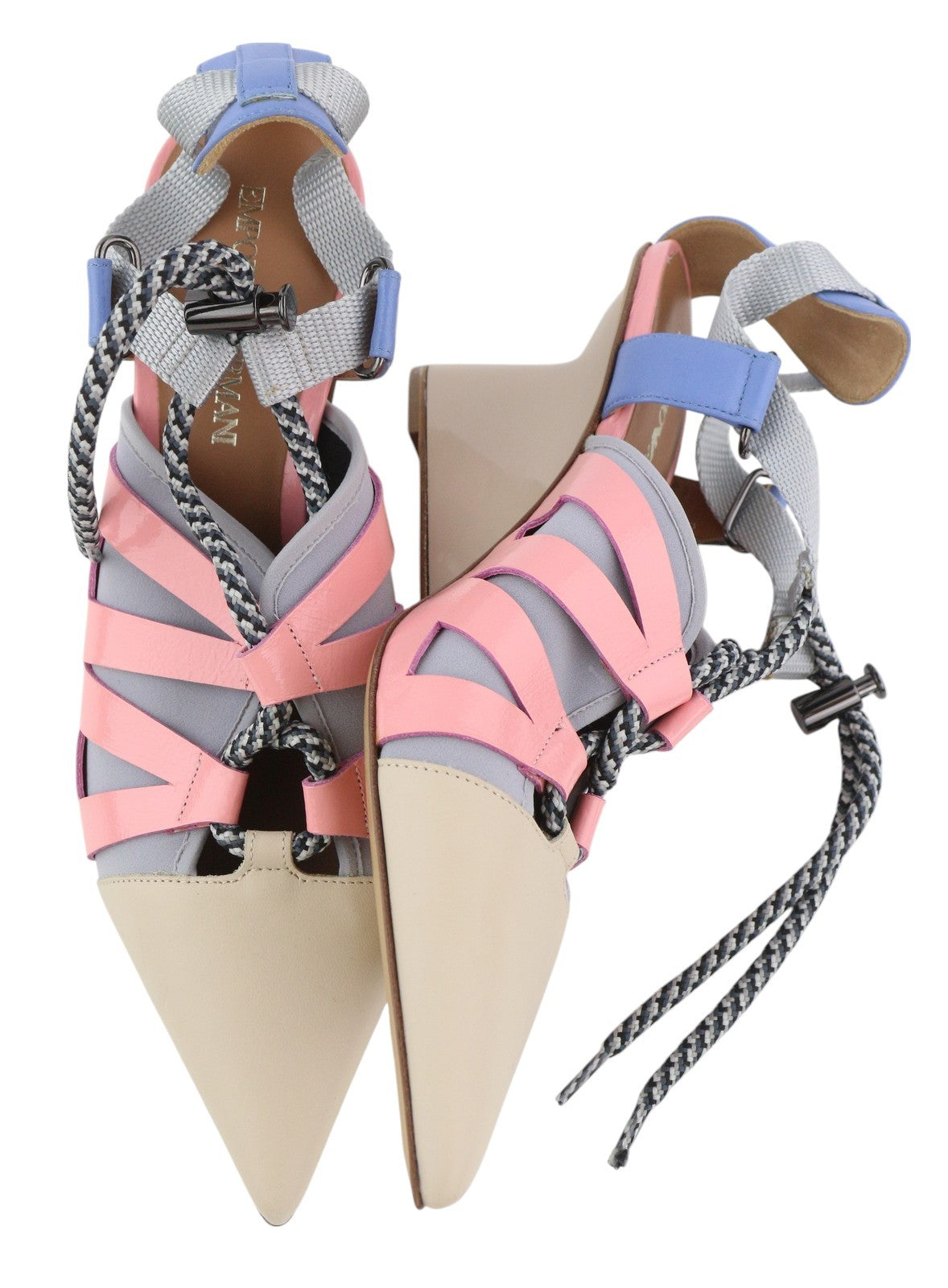 EMPORIO ARMANI Women Heels EU37 Beige Leather Green Drawstring Pumps