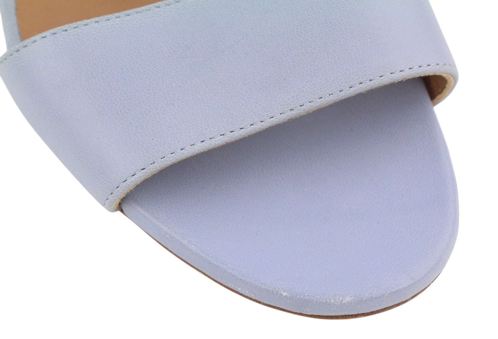 EMPORIO ARMANI Women Heels EU37 Light Blue Leather Logo Buckle Sandals