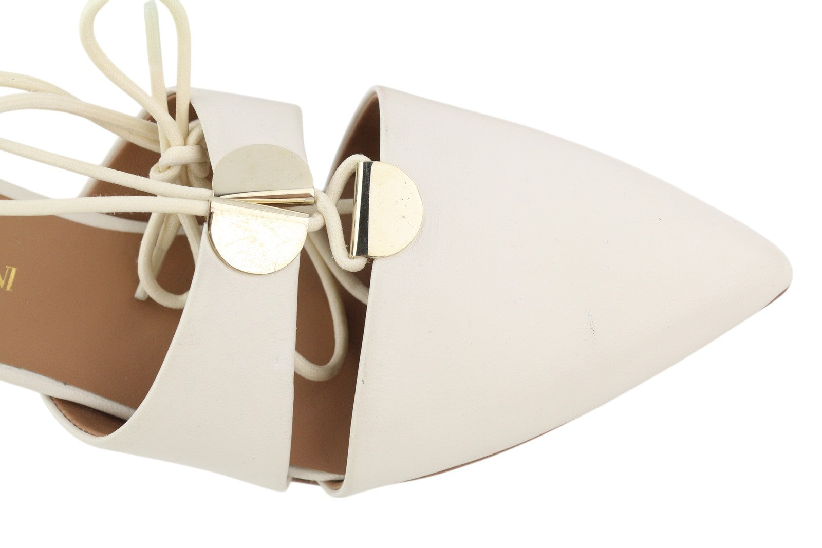 EMPORIO ARMANI Women Heels EU37 White Leather Laced Strap Pumps