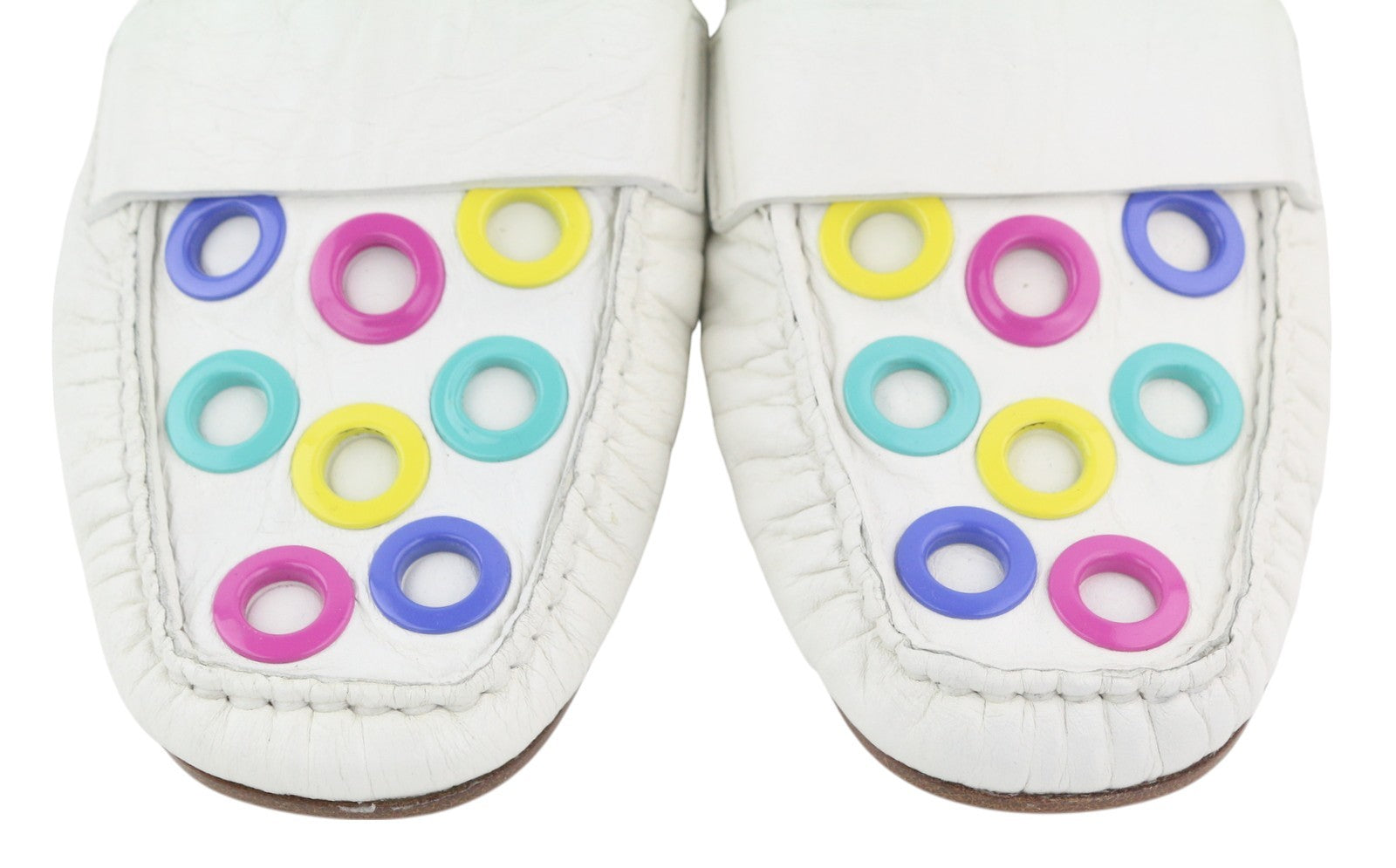 EMPORIO ARMANI Women's White Leather Loafers EU37 Square Toe Color Accent