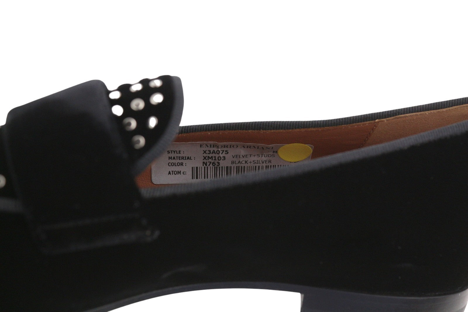EMPORIO ARMANI X3A075 Women's Black Velvet Loafers EU37 Square Toe Slip-On