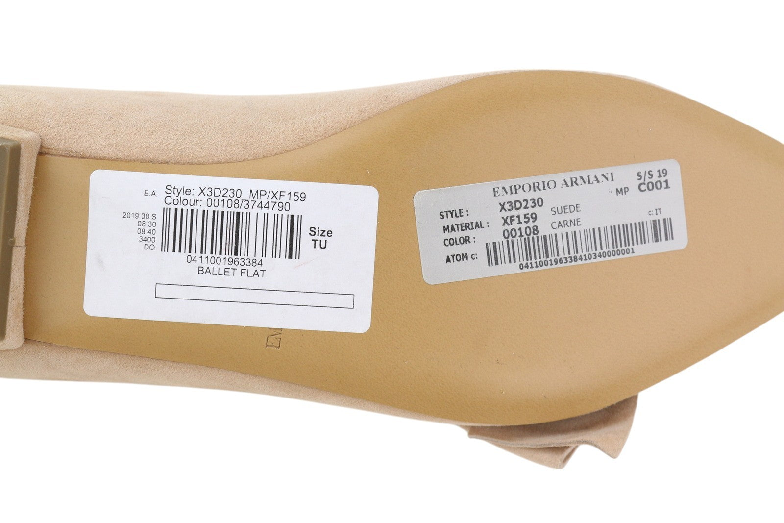 EMPORIO ARMANI X3D230 Women Flats EU37 Beige Suede Leather Pointed Toe Patch Bow