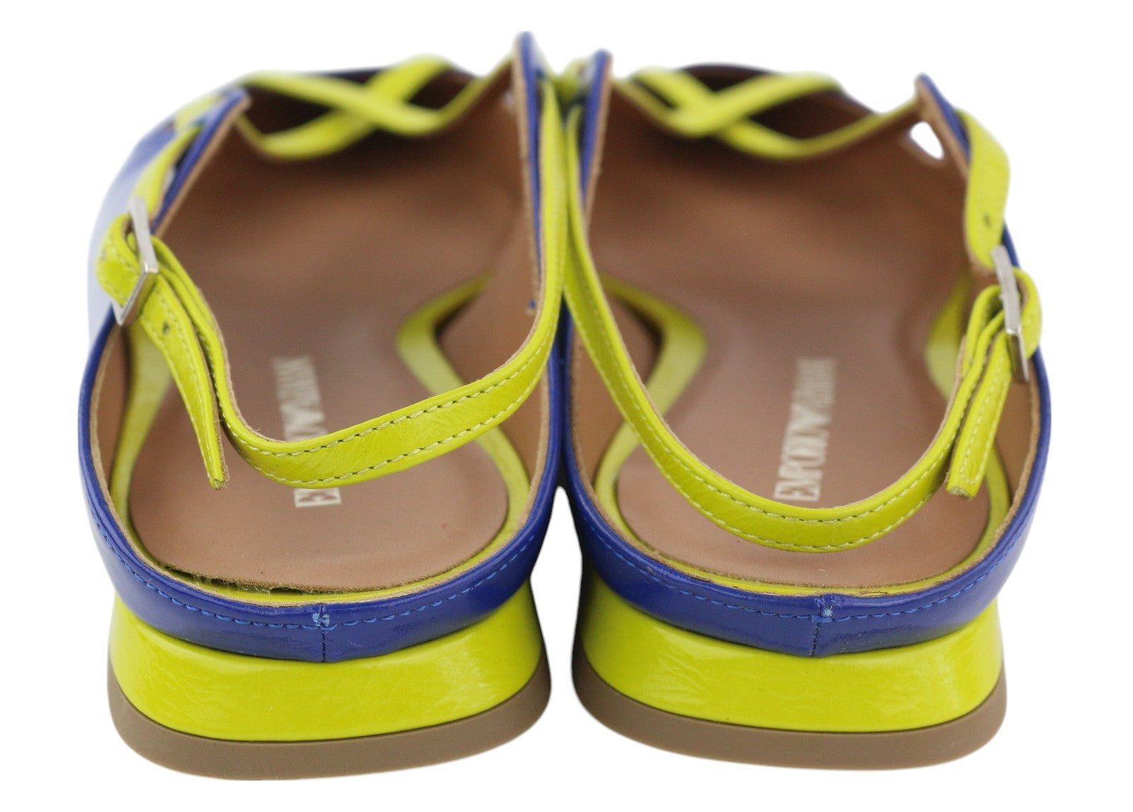 EMPORIO ARMANI X3D235 Women Flats EU37 Shiny Leather Pointed Toe Strappy Buckle