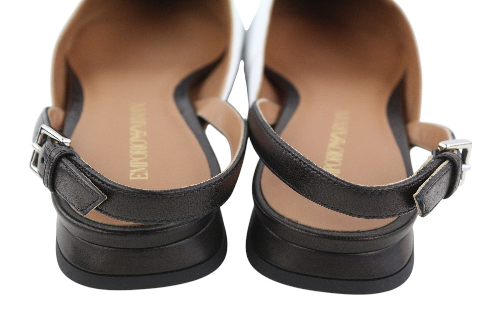 EMPORIO ARMANI X3D247 Women Flats EU37 White Leather Pointed Slip On Logo