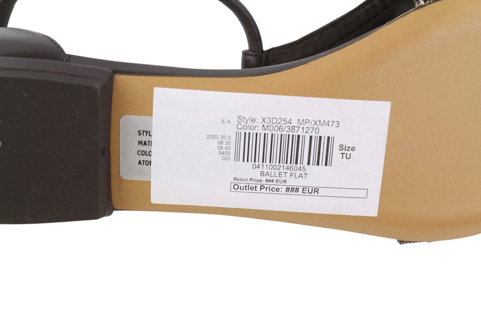EMPORIO ARMANI X3D254 Women Flats EU37 Brown Shiny Pointed Toe Slip Ballerina