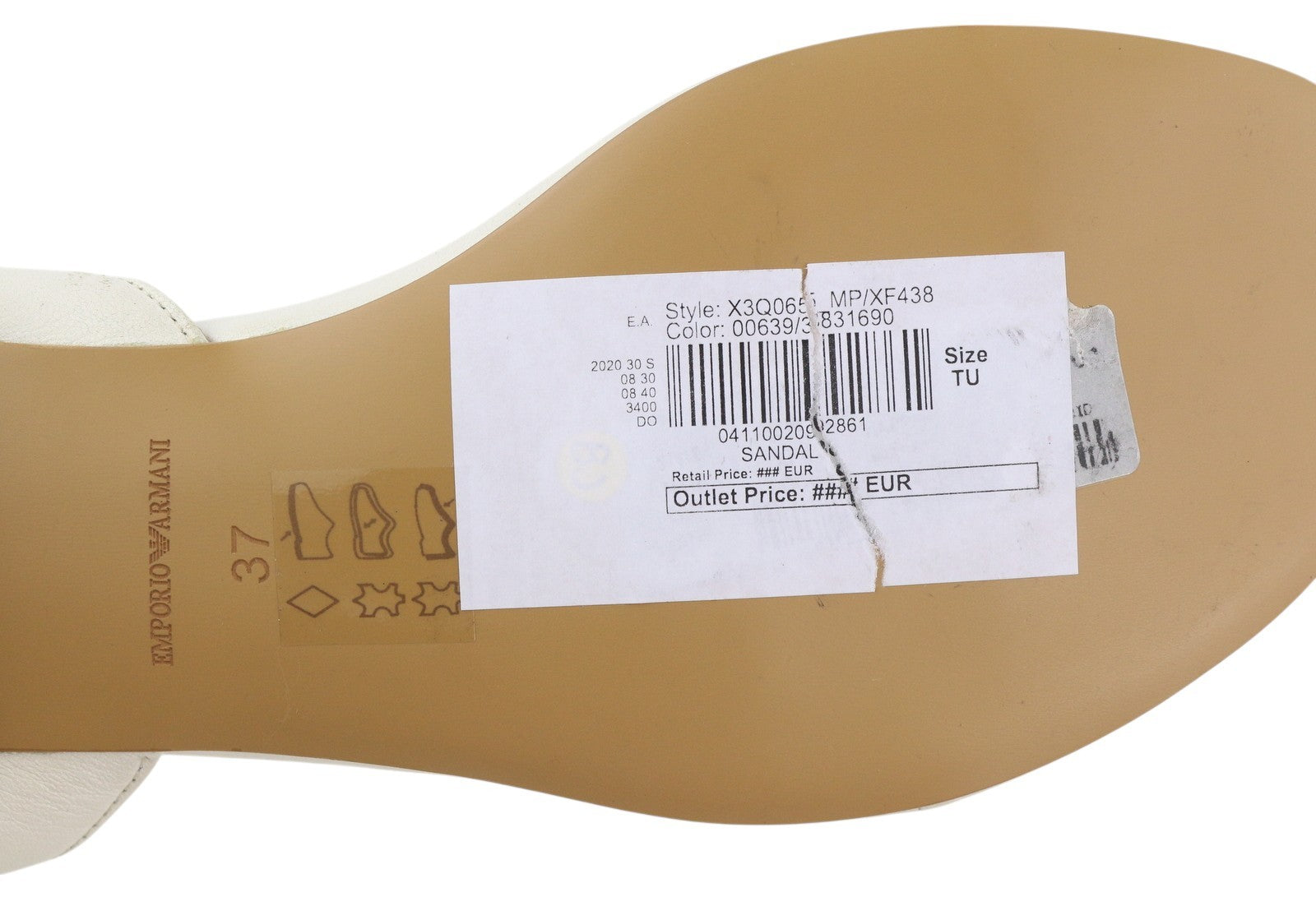 EMPORIO ARMANI X3Q065 Women Sandals EU37 White Leather Flat Logo Print RRP212