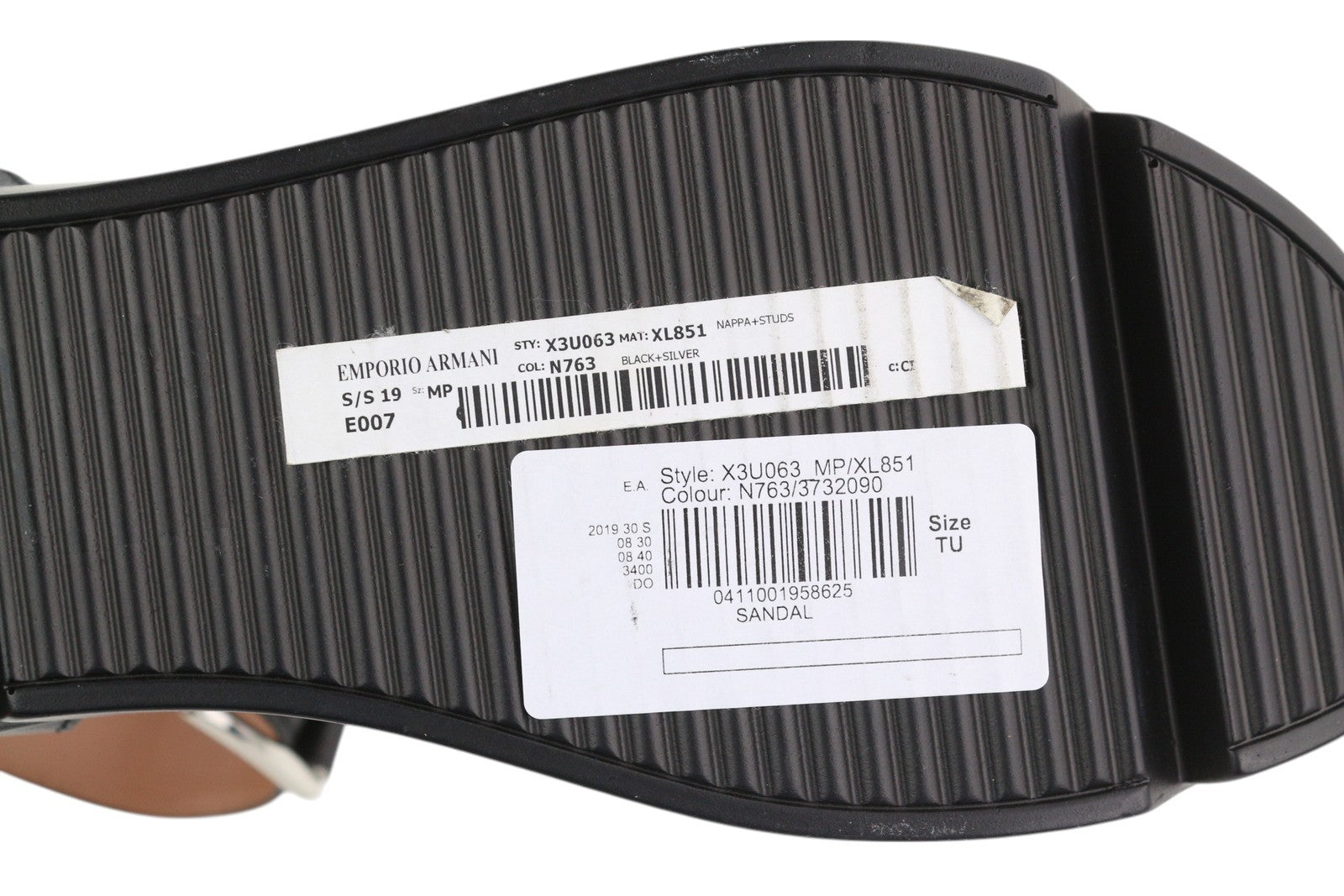 EMPORIO ARMANI X3U063 Women Sandals EU37 Black Leather Stud Platform